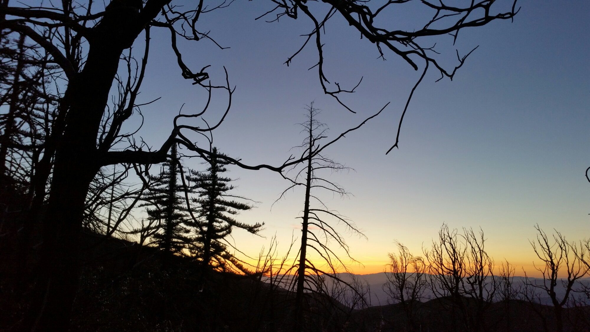 This made it double difficult to find a spot to pitch my tent. So, I kept hiking. The sun was getting lower and lower on the horizon and my views were stellar, as I continued along the Western facing ridge of the mountains. I knew I was getting myself into a tight spot, but I felt pretty good and decided I would just hike on. Just after the sun had set, I stopped on a little flat ridge that jutted out and might have been wide enough to pitch a tent, had there not been a fresh new poodle dog bush sitting right in the middle of the potential tent spot. Bummer. I took off my pack, re-assessd my maps and guidebook notes, put on warm dry clothes, got out my headlamp, and made the decision that I was going night hiking. It was about another 4 miles from that point to what my guidebook described as a “shady camp site in a little ravine, next to a small stream crossing the trail which usually has good flow, at mile 426.0” -so I figured I could at least make it to that spot and have a solid piece of earth to pitch my tent and eat some dinner and have a good night’s rest after a long day. As I was putting on my warm dry clothes and making this decision, I looked East to see the gorgeous full moon rising over the ridgeline, and I felt blessed by her presence and her light. I stood there and reached to my right to the Western horizon, and with my left hand to the Eastern horizon and let the energies of Yin and Yang enter my system through my outstretched arms and fill me up.