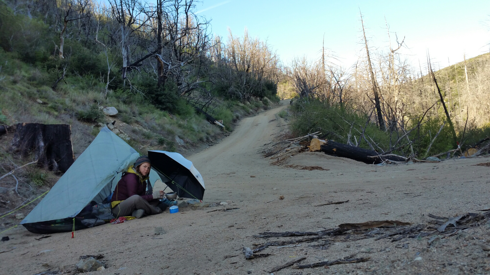 And that is me using my umbrella as a wind shiled to heat water for coffee, as it was a windy night. Day number 29 was not going to be a record day of any kind, but I was determined to hike the 19 miles to Acton, where there was a KOA campground. I never thought I would be so excited to get to a KOA, but believe me, I was!