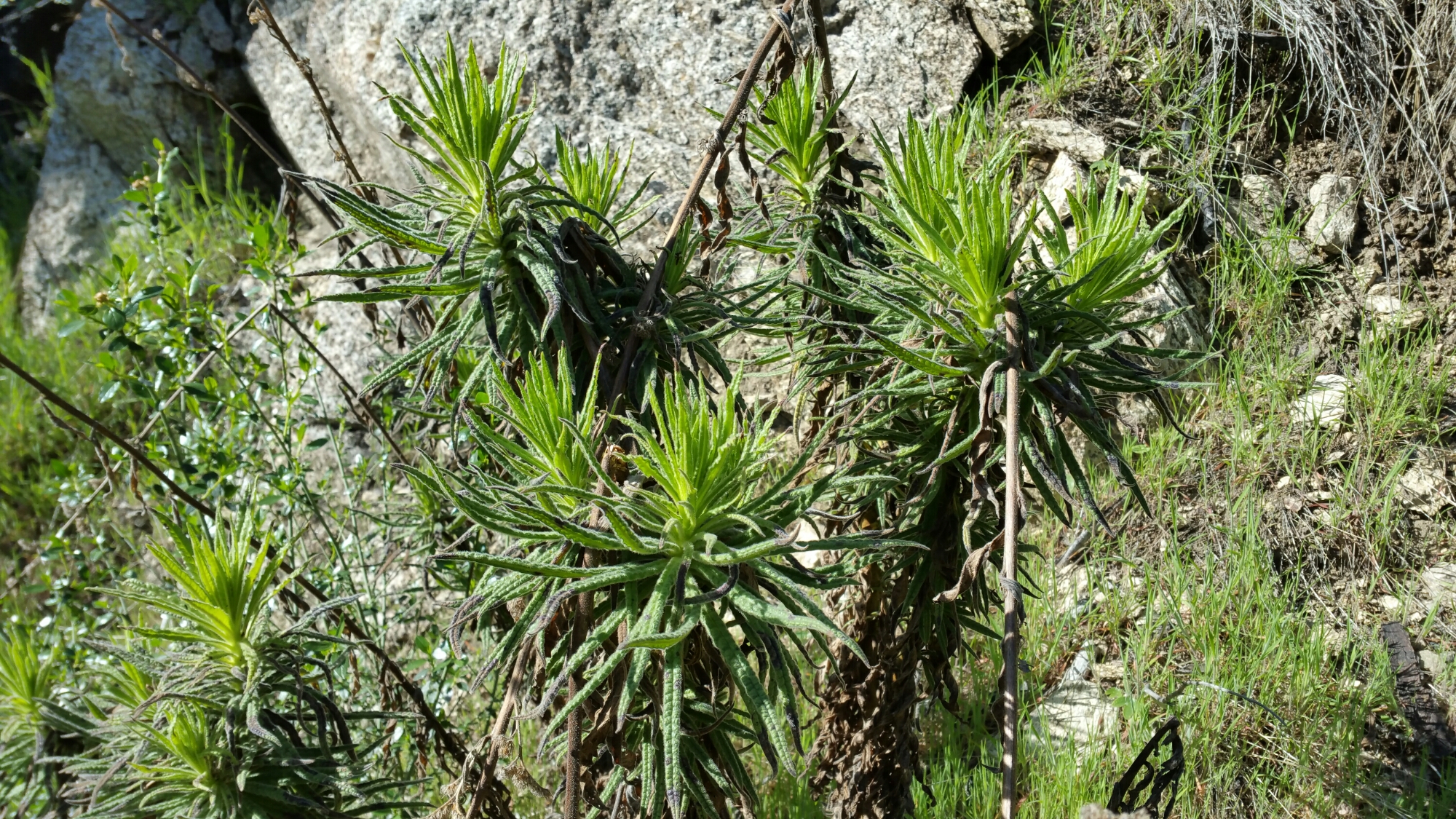 Earlier that day, sometime before noon, I had a sneaking suspicion that I was going to break a mileage record that day. I can’t say why, I did not intend to, didn’t really even want to, but I just had a “hunch”. Well, from the Ranger Station, I had a couple of options. I could camp there, but it was terribly windy, and in my opinion it was still too early to camp. I had just eaten a decent snack, which included a Coffee Chocolate Chia Bar, which contined caffeine, do you see where this is going? Well, I had an 800 foot climb right ahead of me and I was going to carry 5 Litres of water, so I fueled up for that, after having just done 19 miles already, thinking I would hike 2-3 more miles and then stop to camp for the night. So, I got back on trail by 5:30pm and steadily, slowly made the climb. I spotted one or maybe two small little tent sites along that first mile, but I was not ready to stop. By the top of that climb I actually felt pretty good. I started scouting around to find some flat ground, which I knew would be sparse, but by reading my topo map it “looked” like there should be something. Well, there may have been, had there not been a TON of the nefarious poisionous “poodle dog bush” in various states of freshness or deadness all over the place.
