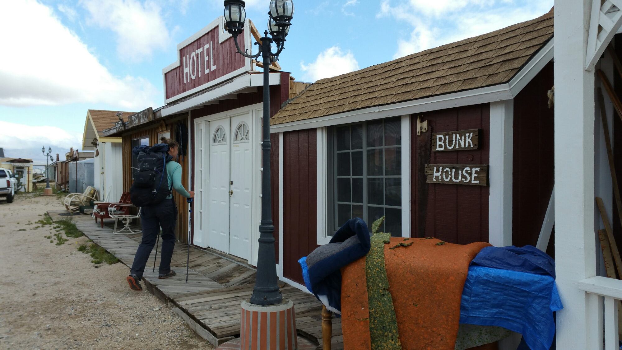 We hustled out of the wind and into the common room at Hiker Town, what a great place! We re-united with several other hikers, made a great lunch and hot coffee (my lunch was actually a late breakfast of 10 grain cereal with butter powder, nuts, goji berries, cinnamon, sea salt, coconut oil and fake maple syrup, followed by two tortillas with cream cheese and salt & pepper). Awesome food combinations been goin’ on, I tell ya!