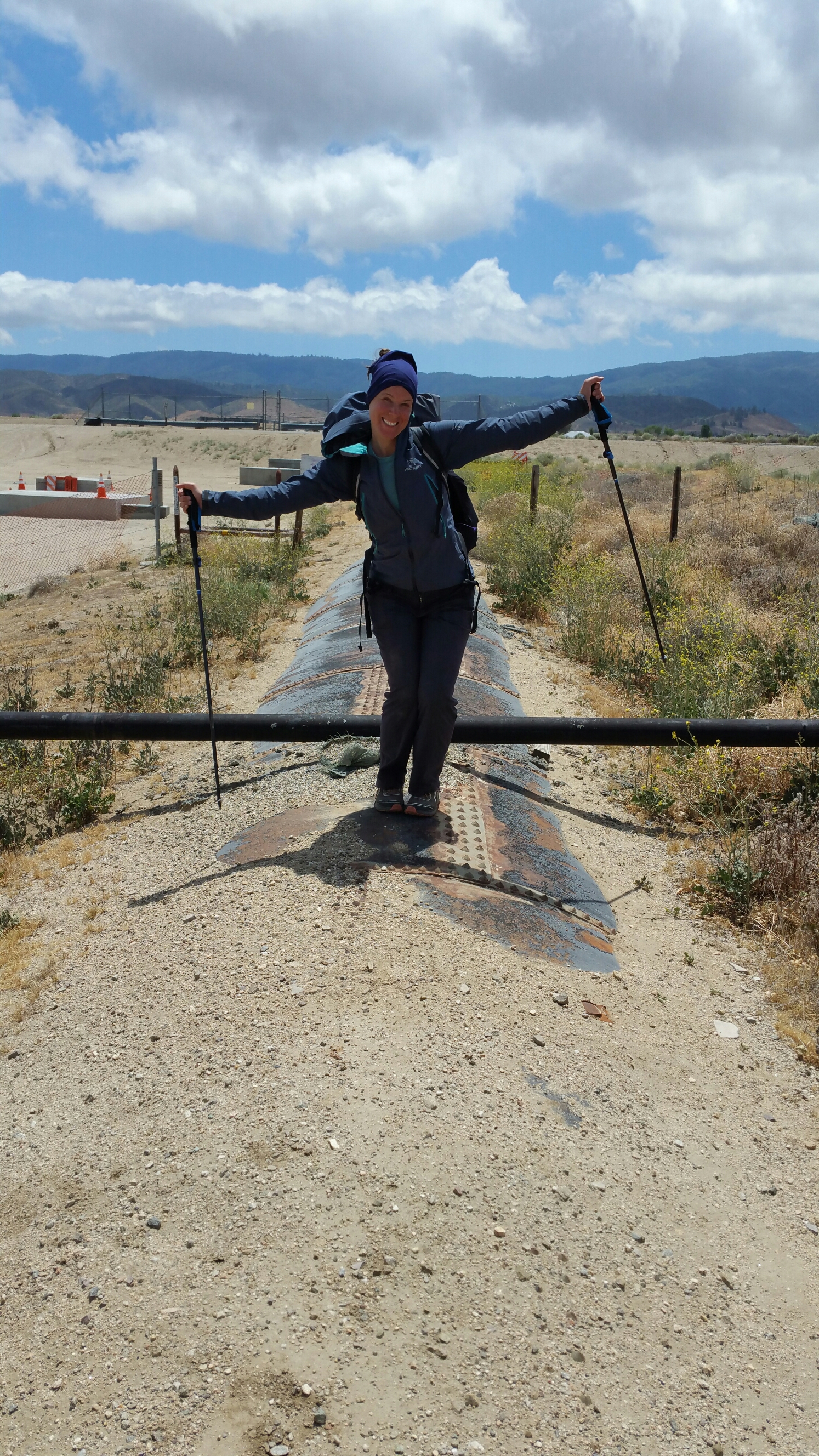 We walked right on top of the giant, crusty, corroded pipe where piles of dirt and sand sat in sections, and large pointed bolts held it together in others. It was getting a bit windy up there, but how often do you ever get to walk for miles in a straight line above “the” pipe that sends millions of gallons of water to LA?