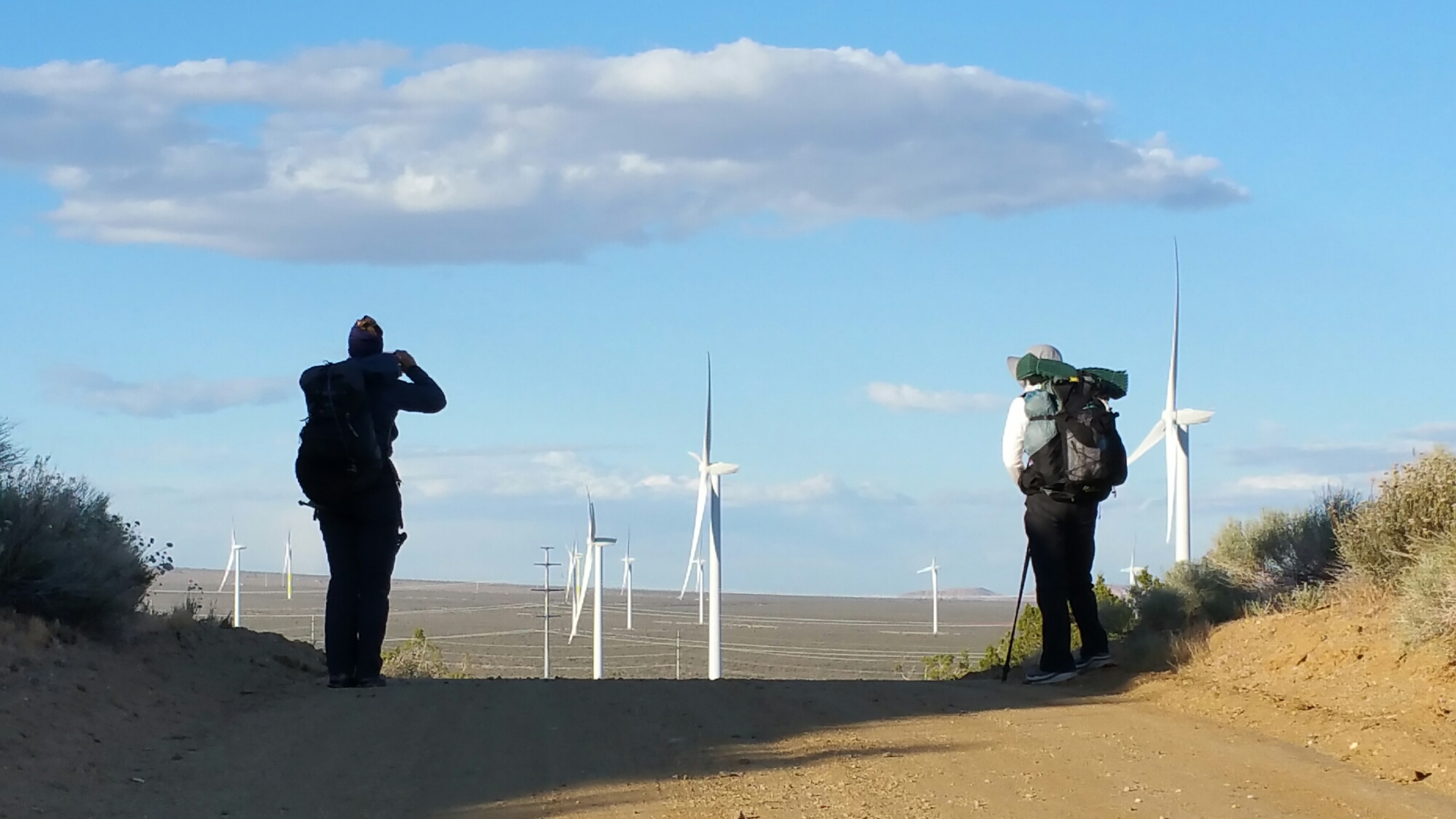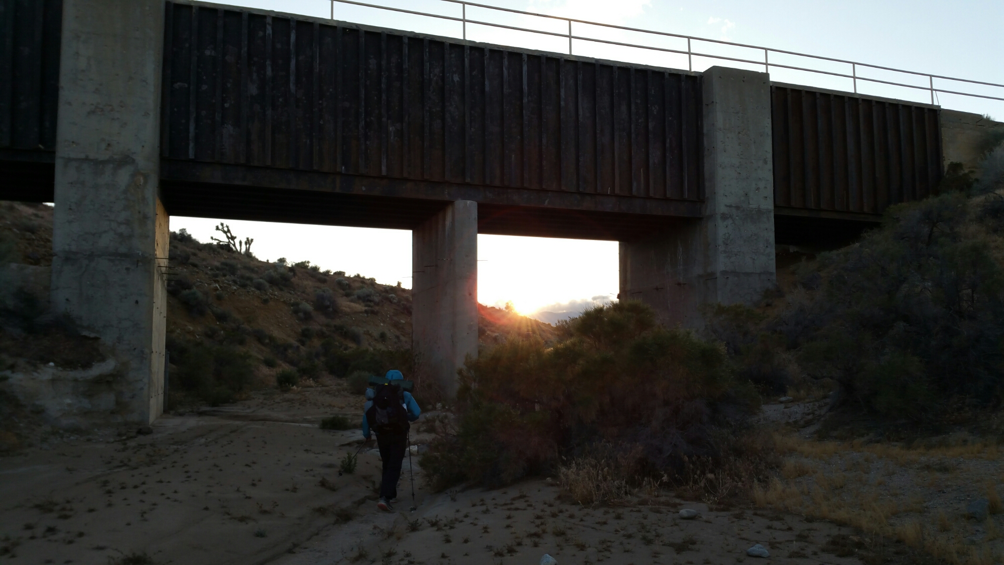 Thursday April 28th, 2016, PCT Day 35, Mile 534.9 at 8:46pm, I am in my tent guarded from the ferocious wind by a small sage bush. It’s actually amazing how safe the sage keeps me, my protector. On every side of me there are giant wind Turbines, and nearby a concrete bridge, a water faucet pouring water from the Los Angeles Aquaduct, and four other hikers tucked in various pockets of bushes in this sand wash called Cottonwood Creek. There is no creek except for the creeking of the wind turbines, whoosh, whoosh.