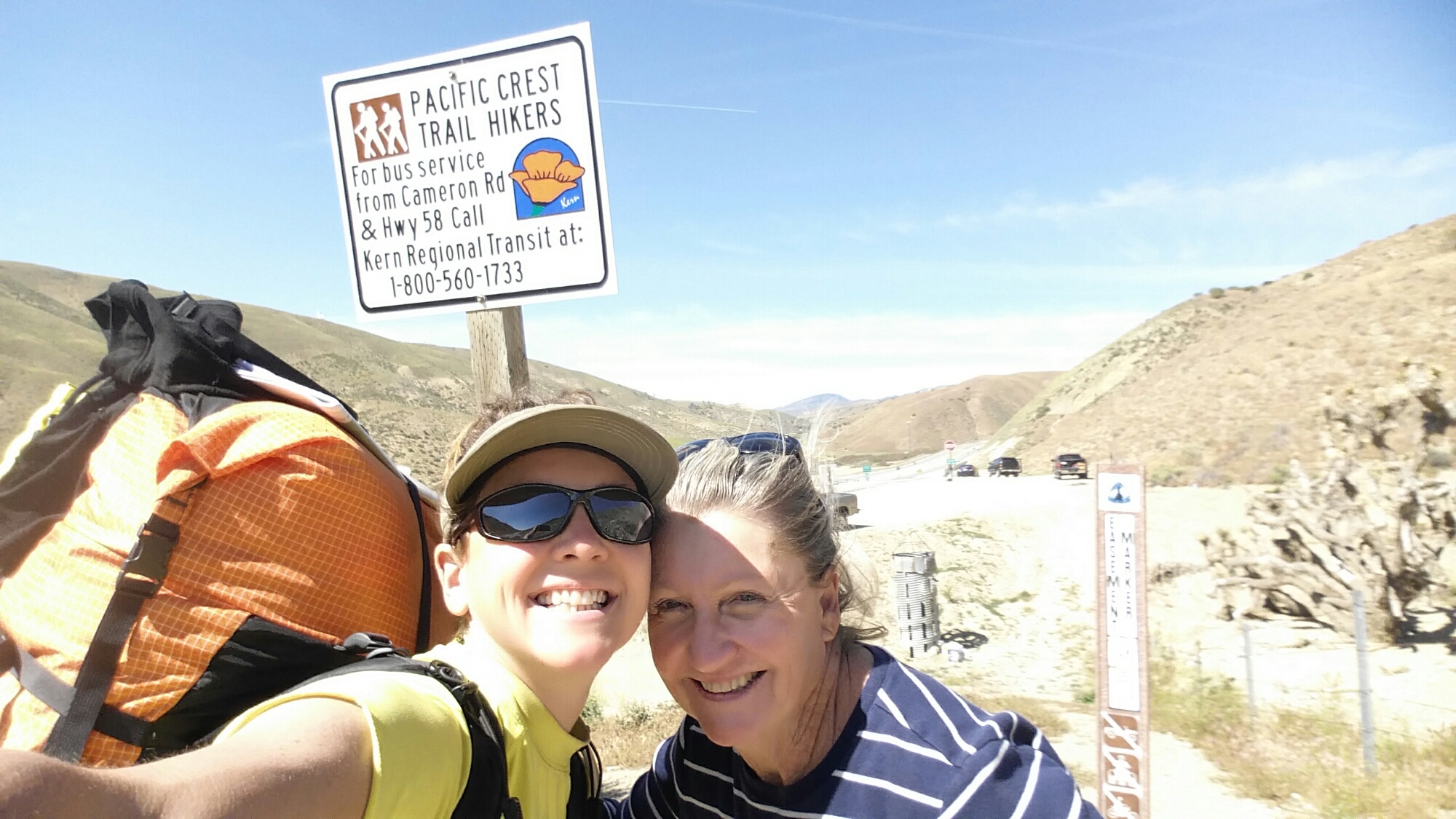 My friends and I left Tehachapi at 10:30 on Tuesday when my Mom so graciously dropped us off at the trail head after shuttling us around town to pick up re-supply packages and shop for more food for the week. I remember I had taken a photo just a few months ago from the exact trailhead at Cameron Road, and I posted it on Instagram, noting that the next time I would stand at that spot I would have hiked there from Mexico, which at that time seemed both daunting and wonderful. Well, the moment had finally come and so I took a photo there with my Mom. It’s a strange and also proud feeling, thinking back to all the miles that got me to this point, all 566 of them. Every day at some point, or many points, I can say I felt sore, tired, in pain, but also elated, happy, contemplative and always grateful to be in this position to BE hiking the PCT, to BE doing this every day. I am so blessed!