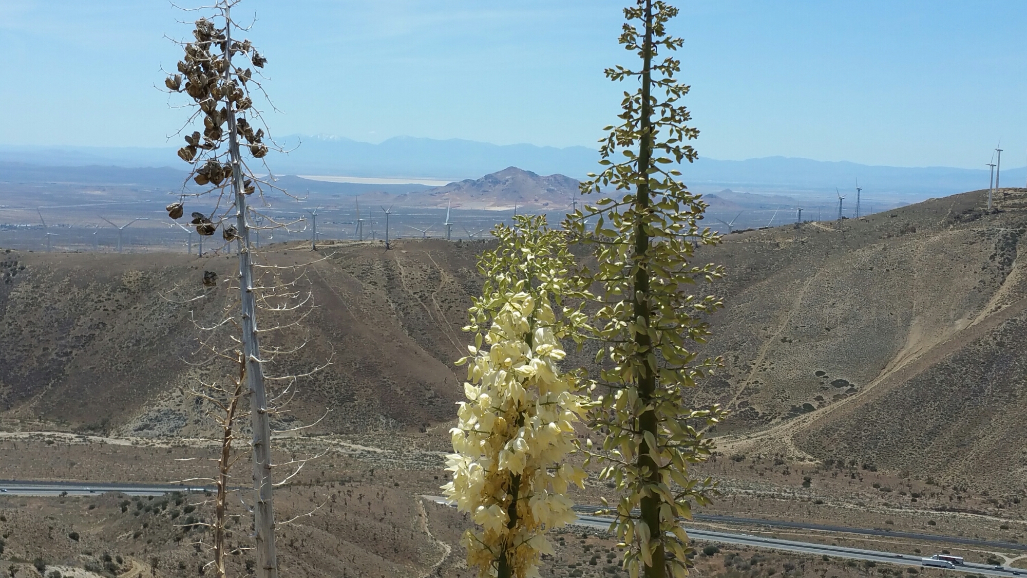 We all had our anxieties about section F from Tehachapi to Walker Pass, as it is infamous for being one of the hottest, driest and more difficult sections, with a lot of climbing to get back up into the mountains and out of the glaring sun. Section F has waterless stretches, the worst one being 43 miles, where there is no sure trail water, so you have to be prepared to carry as much as 8 litres at one time, depending on your daily mileage and where you camp. On Tuesday morning, we were all fully loaded with 5 days or more of food and each carried enough water to take us through to that evening, so about 4-5 litres each. It was about 4,000 feet of climbing, which is not too bad over 18 miles, but with a 40+ pound pack, it’s a whole other feat. We were extremely fortunate with the weather though, and it did not top 75 degrees as we climbed. Actually, this stretch of trail was much less ominous than predicted, and for me, I was excited to finally get to see where the trail went, after splitting off into the hills. I have driven by so many times leaving my Mom’s house, craning my neck from the freeway to see where the trail went “up” but I could never tell. Now I know! These hills were indeed dry and it was hot with very little shade save the occasional Joshua Tree. The desert brush cracked in the wind and crunched under my feet.