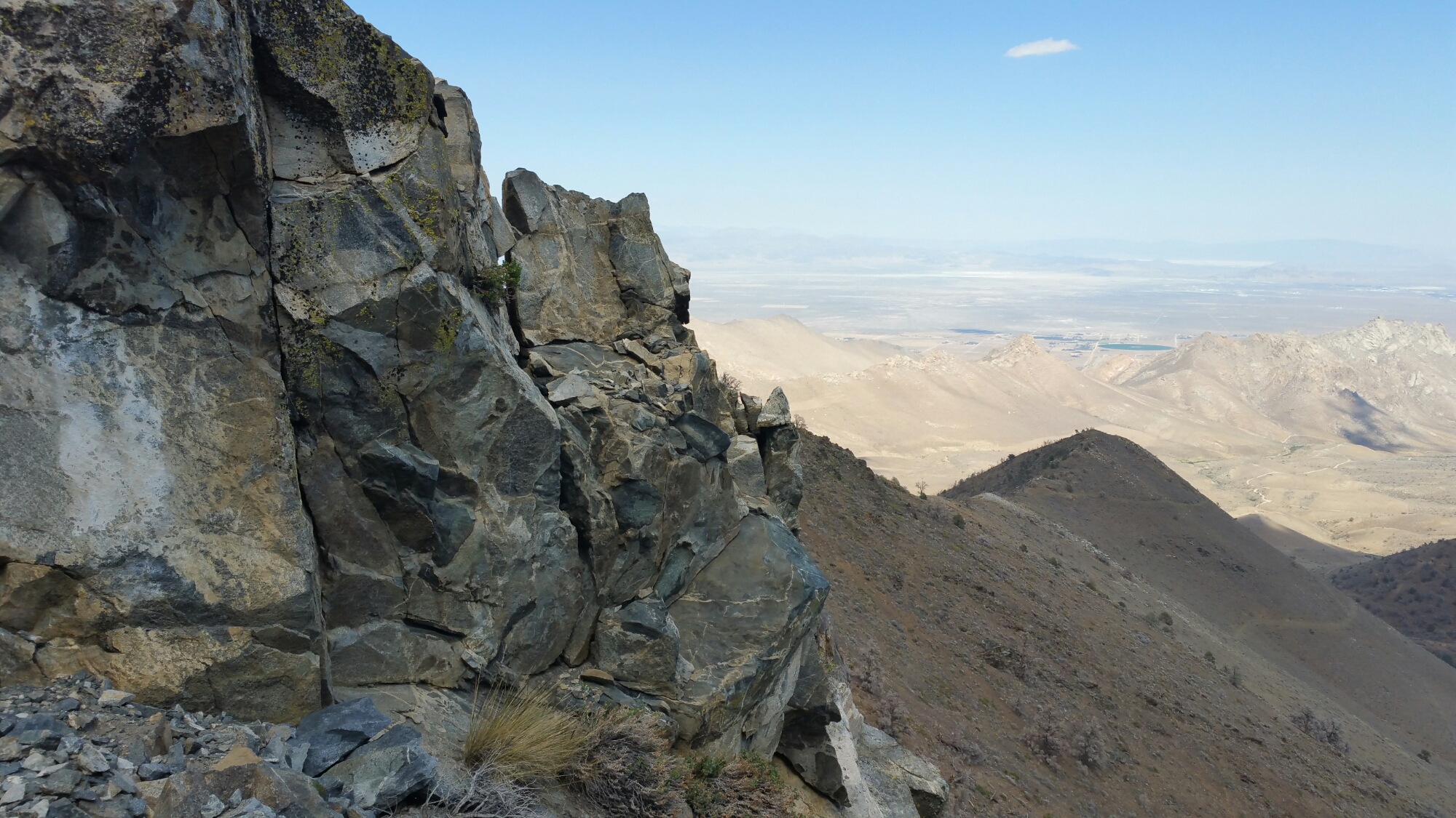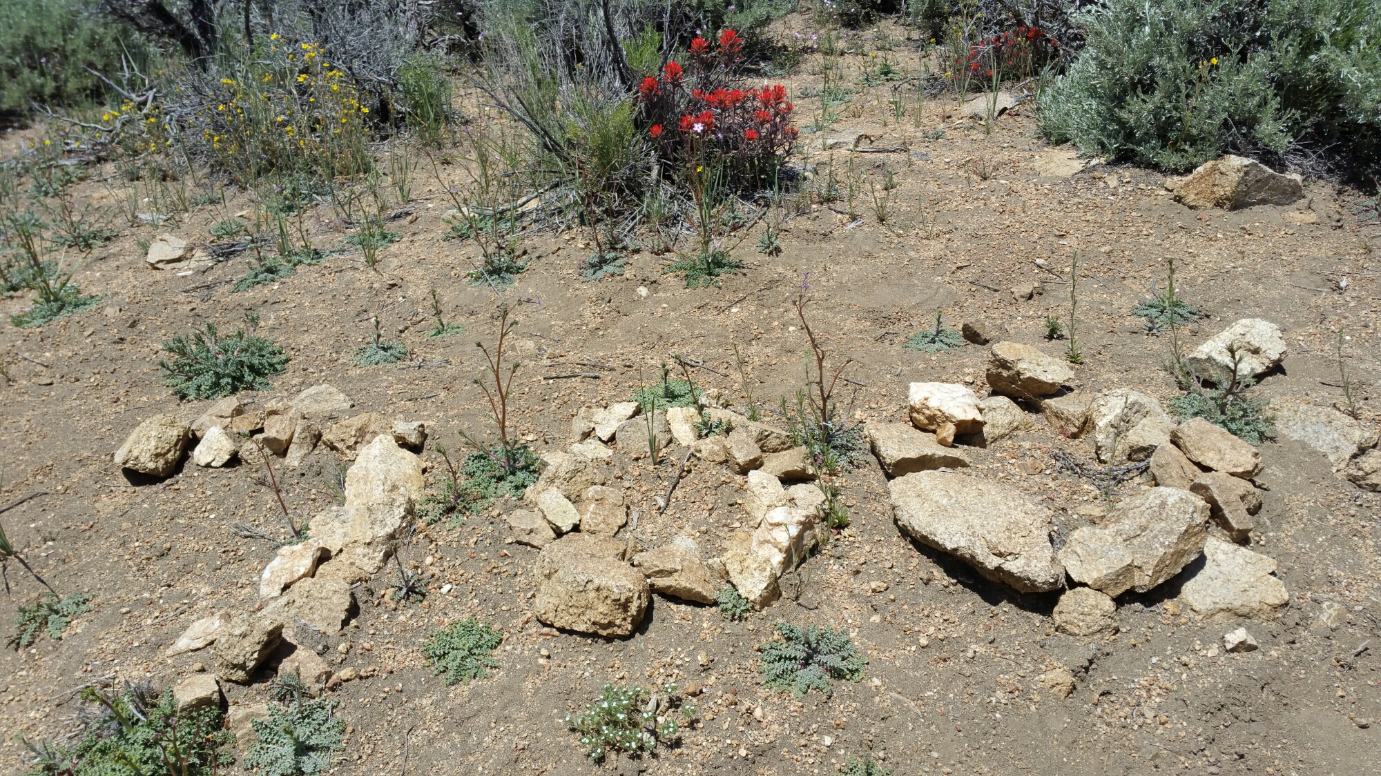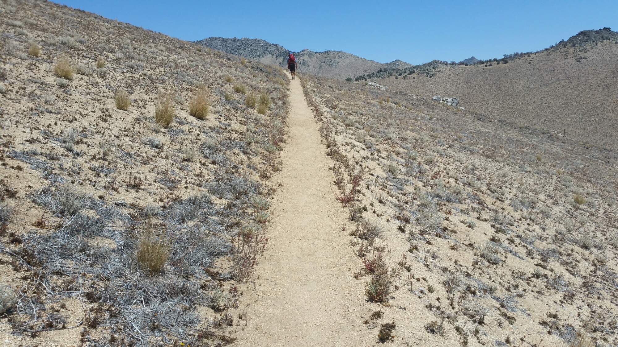For the next 2 days it was like this, trees, then exposed slopes, hot hot sun, and still a plethora of wild flowers. As I climbed over the ridges, first I could see the Eastern Valley below, and eventually the granite of the Sierra Range started to show.