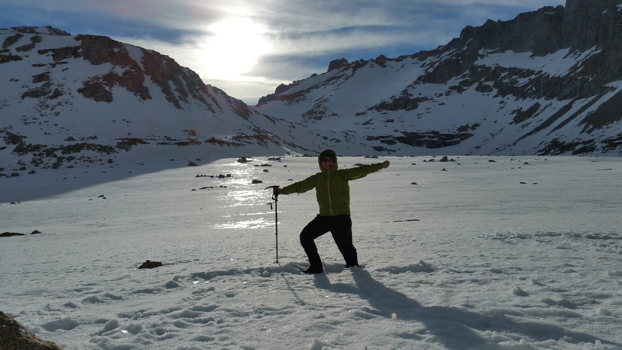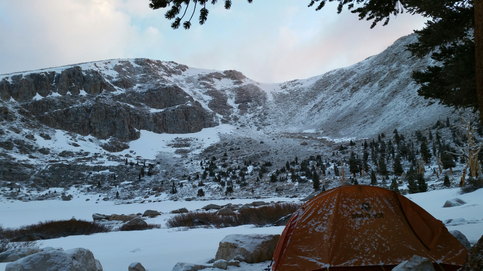 First thing in the morning, we were instructed by Ned to hunker down and wait for further instruction while we observed what the weather was going to do. I was somewhat releived, as the transition from hiking and camping in the dirt to the snow felt dramatic, and it helped me that I had some time to take it all in. I sat and sipped my coffee, looking at the view of the lake and the giant granite walls surrounding it on 3 sides. The elevation of Chicken Spring Lake is 11,242 ft, over 5,000 feet higher than Kennedy Meadows. Elevation changes everything. It was cold there, about 30F that morning, but I did not know then that I would be sleeping later that week in temps half of that. By 9:00am we got the go ahead from Ned that we were ok to hit the trail, so we rapidly packed up and hit the trail.