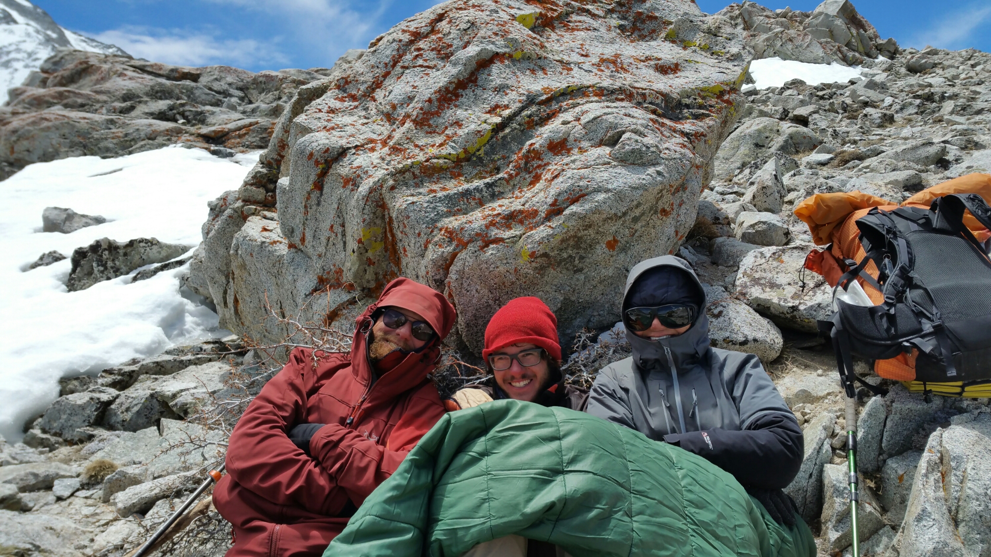 They suited Betty up and left us two giant garbage bags full of MRE food, and off they went. It all happpened pretty fast. No sooner had the helicopter set off did we tromp over the snow back into camp and spread all the food rations out on the ground. We sorted them by category and divied them up. Later that day there was a pseudo stock market of MRE food trade going on around camp, which lifted our spirits considerably. MP3 ate FOUR meals back to back immediately. I don’t even want to know what that must have done wo his digestive system!