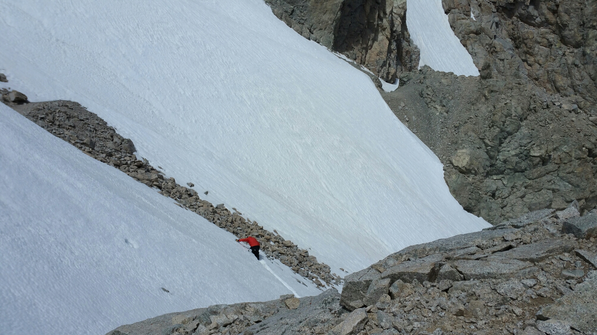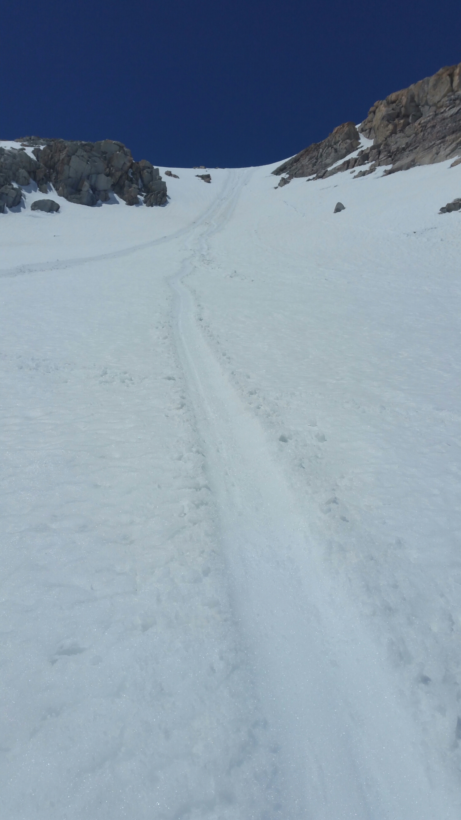 Once we all had made it up, and took in all the spectacular views, took photos and soaked it all in. We then had to get “down”. Ned guided us along the left side of the mountain on an arm where we could heel plunge quite comfortably. Following the first 500 feet down, we could then glissade to drop elevation very quickly, and I must say, in the most fun way. Glissading is basically sliding down the mountian on your butt, with an ice axe in your hand for self arrest. I lOVE it and ended up glissading about 5 more sections that day. It is really fun and I like that I am already on the ground. It make me feel safer, because I am not worried about slipping, I am essentially doing a controlled slip! It’s just great and makes me laugh like a little kid. My glissade trail: