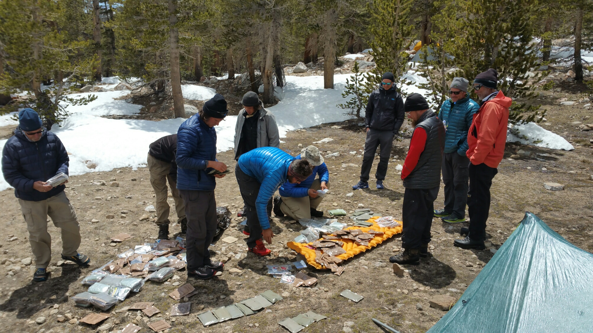 In the morning, Ned rose early and made more phone calls to SAR. By 7:00am, he had spoken with Sequoia National Park Forest Service, and determined that the wind event was ending, and that the helicopter could conceivable fly in sometime between 12pm and 2pm that day. However, they could not flly any hikers out unless they were injured or had a medical condition which prevented them from hiking themselves out. The resolution was that they were offering to provide us with a government issued food drop, enough for 10 hikers for 2 days, so that we could all continue our hike and get out at the originally intended trail, at Kearsarge. So, that was the answer, we would be hiking over Forester after all. Yay!! I could not hide my excitement, I had really looked forward to facing this challenge, and what this also meant, was that my sorrowful projection of having to “leave” the Sierra’s for the time being, was no longer valid. This meant that it was going to be okay to continue. I suddenly realized that, these things happen. Weather in the mountains is unpredictable. My mother lives in the mountains and she is always saying “the weather dictates how we live and what we do”, and now I have a much fuller understanding of what she means. This was an important lesson to learn, as this weather event was not a disaster, and it passed. It did not equate to having to leave the mountains, or abandon the hike, or even leave the trail temporarily. The key factor in this equation was food. Once the food factor was again under our control, there was nothing left to be concerned with. All we had to do was wait a day for the weather to improve, and we could continue.