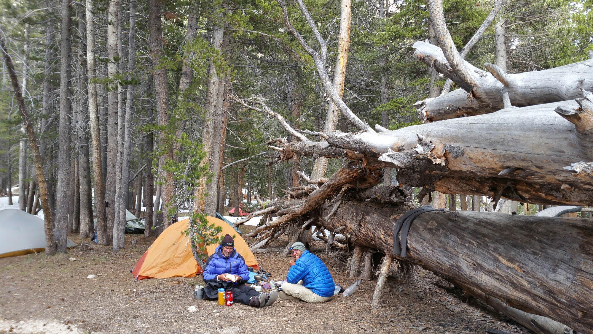 We made it to Upper Vidette Meadow after a 5 mile SLOG through the snowy, slushy, post-holey forest which followed the most beautiful creeks. When we got to camp, I was done with a capital “D”. I was exhausted, cold, wet and hungry. I really had to get some dry clothes on and get food in me, and once I did, I bounced back quite quickly. Prince and Ned joined me and we sat in a little circle and ate our dinners an recounted the adventures of the day, and the week.