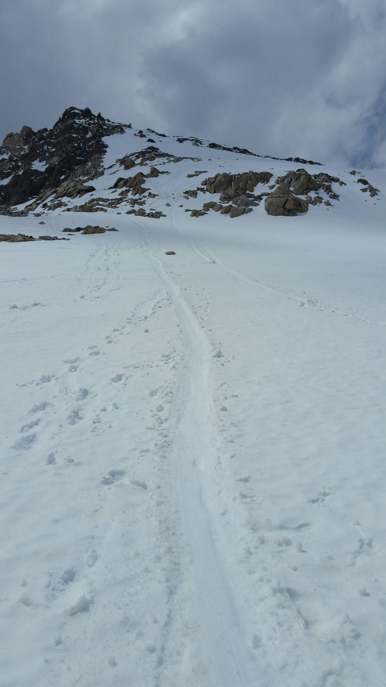 and the traverse on the beginning of the way down, we would cross this slope and then hang a hard left: