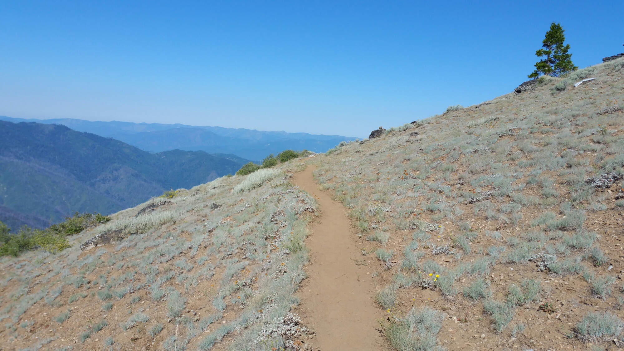 This campground is really close to town, only 6.4 miles on a road, so several hikers were talking about getting a hitch in tonight. This place is deserted. Just a bunch of thru hikers. I made camp with a few other hikers and cooked a dinner that I also pilfered out of the hiker box. It was a bunch of dehydrated broccoli with glass noodles and an Asian sauce of some sort that tasted like seaweed. It was pretty good, but it needed peanut butter added in. Everything out here is better with a spoonful of PB. It’s late, dark and still hot. I’m laying naked and sticky in my tent, while the crickets chirp, cicadas buzz, and the river flows lazily in the distance. Tomorrow we road walk into Seiad Valley to pick up resupply and hopefully eat lunch and wait out the heat. As today we came down 7K feet, guess what we get to do tomorrow? Up, up, up. No doubt, it’s gonna suck. No doubt, once we realize we’re going up, we will still be going up.