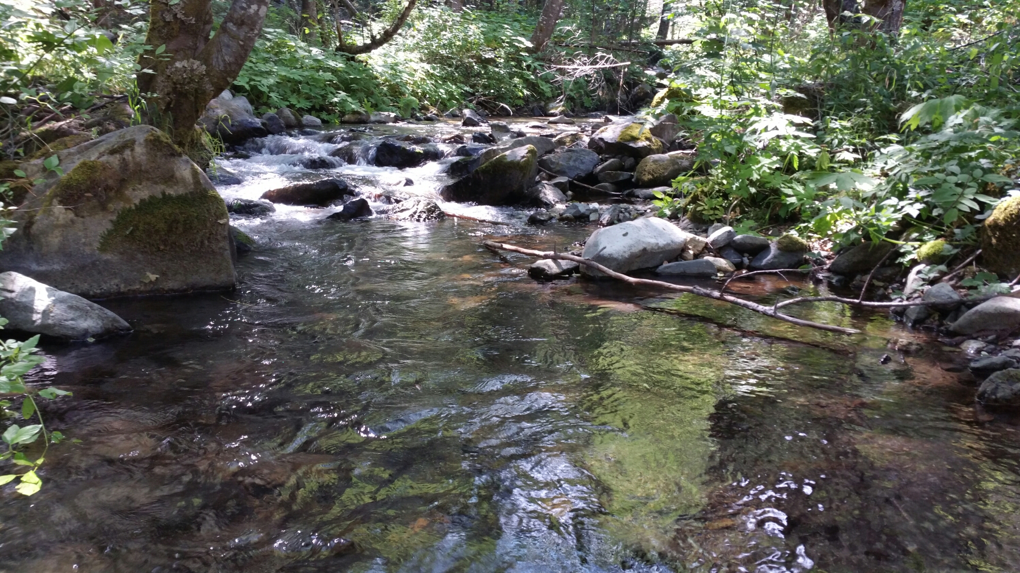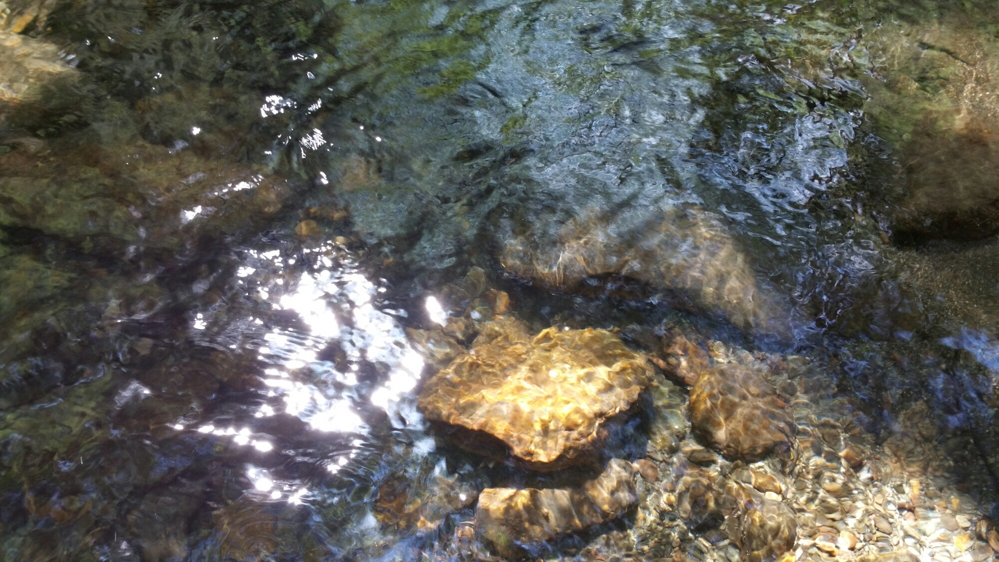 In all of this heat, I got to thinking about water. I think about water a lot, actually. Mostly I just think how grateful I am for it. Water is so vitally important to all of human and plant and amimal life, of course. But, water is truly important out here. Water stimulates and soothes all of our senses. I love water. I love it’s presence anywhere and in any form.Sometimes it’s a lake. Sometimes a trickle, maybe a mud puddle forms from that trickle and my feet stick and make a squishy sound as I walk through it and a little bit of mud splashe up on the back of my leg and feels good. Then there is moving water, the best kind in my opinion. Flowing, cold, soothing, making that sound over the rocks, hitting a pool, or splashing over a fallen log. Water is beautiful to look at. Water tastes the most refreshing. Water smells clean. Water makes so many different sounds. Water feels so wonderful all over your body.