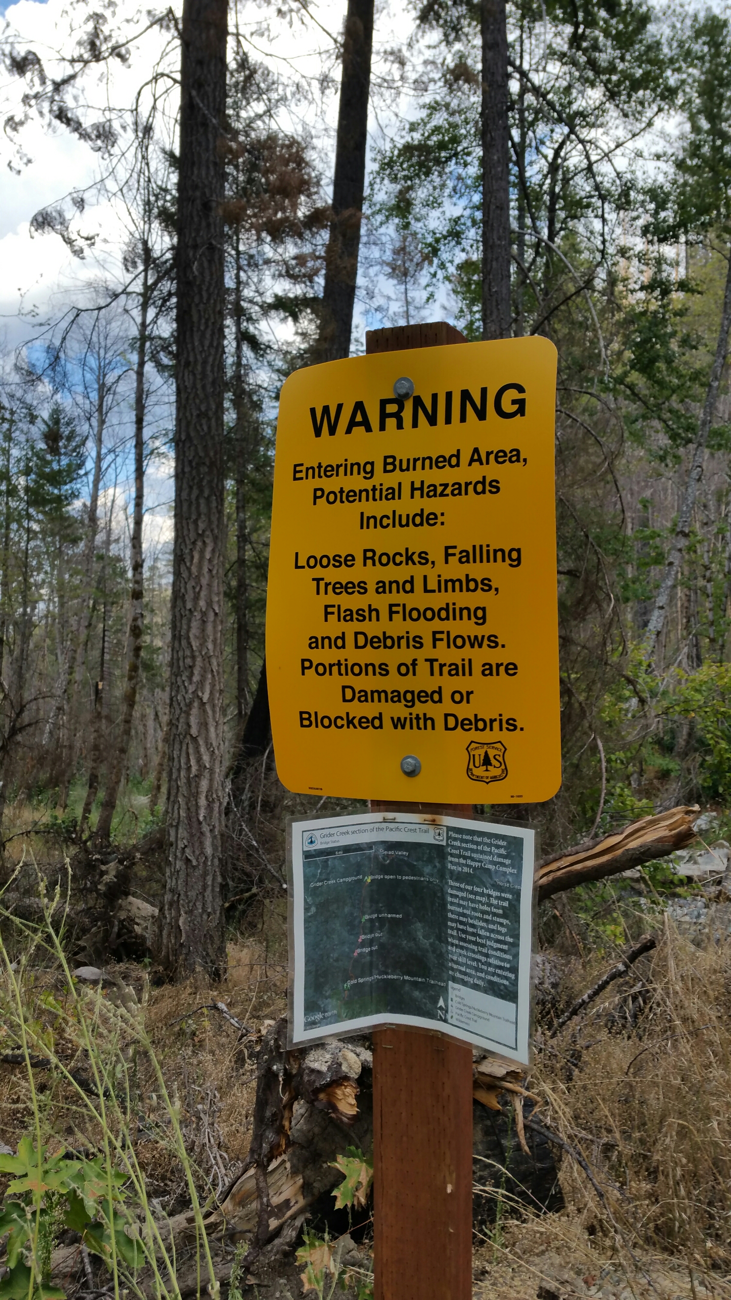 I made it to camp by 6:30 or so, and read postings that warned about the dangers of the burned area and also that the campground here was closed due to a fire in 2014.