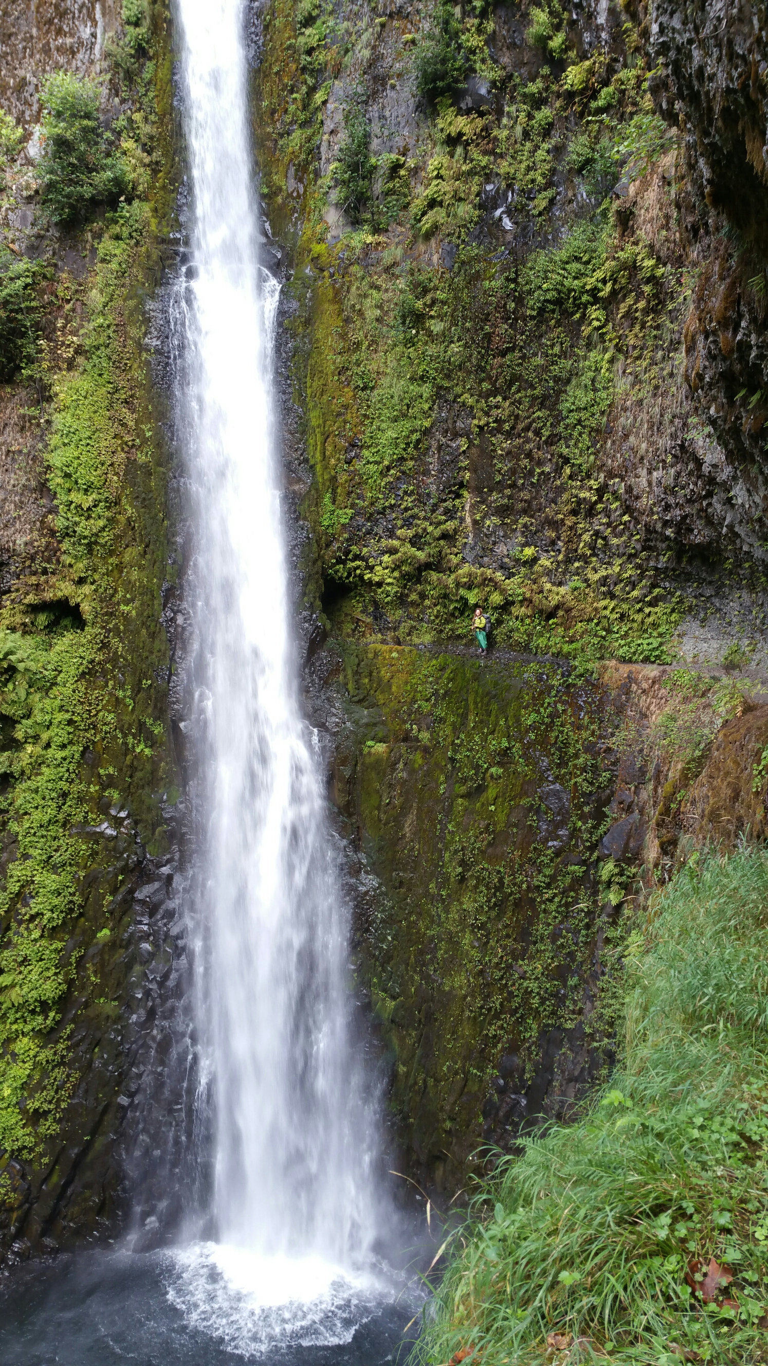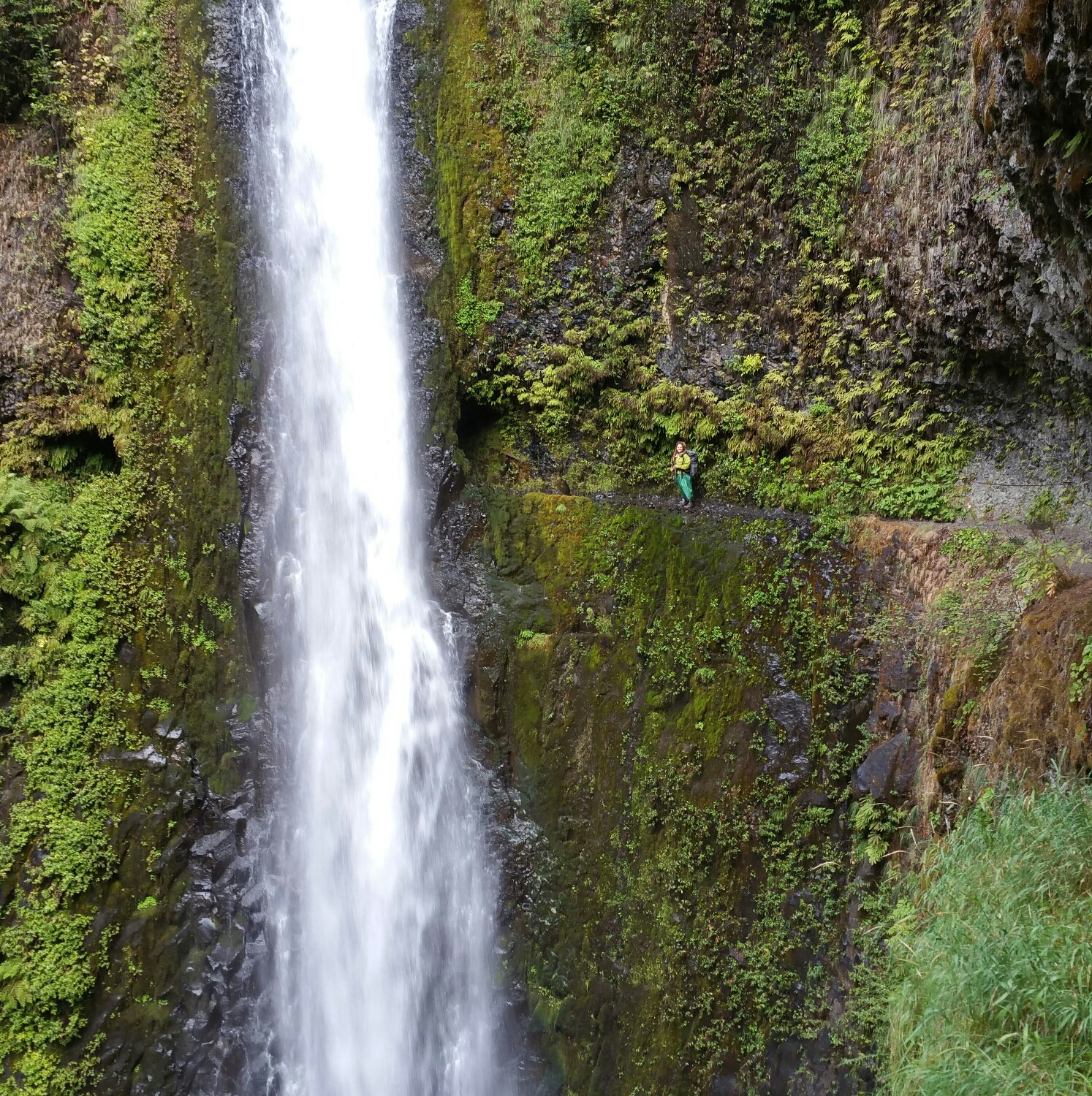 The first section of the alternate was intensely steep and I was walking very precariously on my injured feet, hoping it was not going to be like this all the way. By the time I reached the Eagle Falls trail, it mellowed out and found myself in a wonderland of waterfalls. In particular, I was looking forward to the famous and stunning Tunnel Falls, a special little spot on this big blue planet. I promised myself I would get someone to take a photo of me standing by the waterfall, even if it meant waiting. As luck would have it, there was a nice Korean couple on the trail who were happy to exchange hands with our cameras. The trail follows a lot of narrow ridges that drop off into gorges and pools that catch the falling waters, the walls covered in glowing green mosses and rich with chlorophyll. I hurried down the trail to get as close to the waterfall as I could for the photo, as an exercise in perspective. Once again, I am humbled, I am so small.