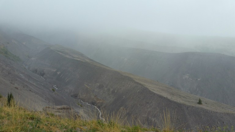 I managed to keep dry enough trough the night and when I woke, the fog and mist were thinning, and there was a hint of sunlight eeking its way through. Still, I had to start the day with wet everything, the feet being the worst, but at least once I started to warm up it wasn’t so bad. After several miles I came to an opening in the forest along a ridge where in my guidebook it stated panoramic view of Mt. Hood, Mt. St. Helen’s and Mt. Rainier. Really?
