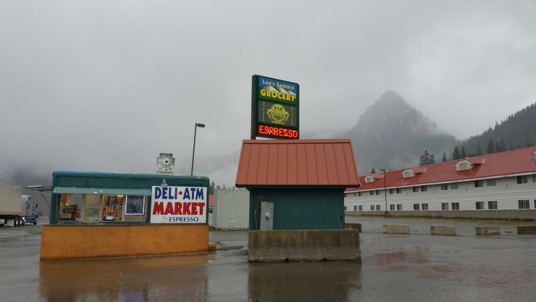 Snoqulamie Pass has developed a reputation for “weather”because of it’s geographical position in a low spot between high mountains. I really did not know what to expect of this place, except that my guidebook noted “plan to take a zero day here and stay in the hotel, you will be ready for it by now” and this couldn’t have been more true. I’d resisted staying hotels for a month, saving my money for a “rainy trail day”, and here it was. Snoqualmie Pass is basically a tiny ski resort, with a couple small lodging options, a convenience store, a couple restaurants, a coffee shop, a food truck (which actually had amazing food), an espresso stand with an ATM, and a gas station. That’s it. It offered me everything I needed, I was so happy to be there. Rodger even came down to see that we had all made it safely, and Crush returned his sweater to him, fortunately she was able to keep it dry!