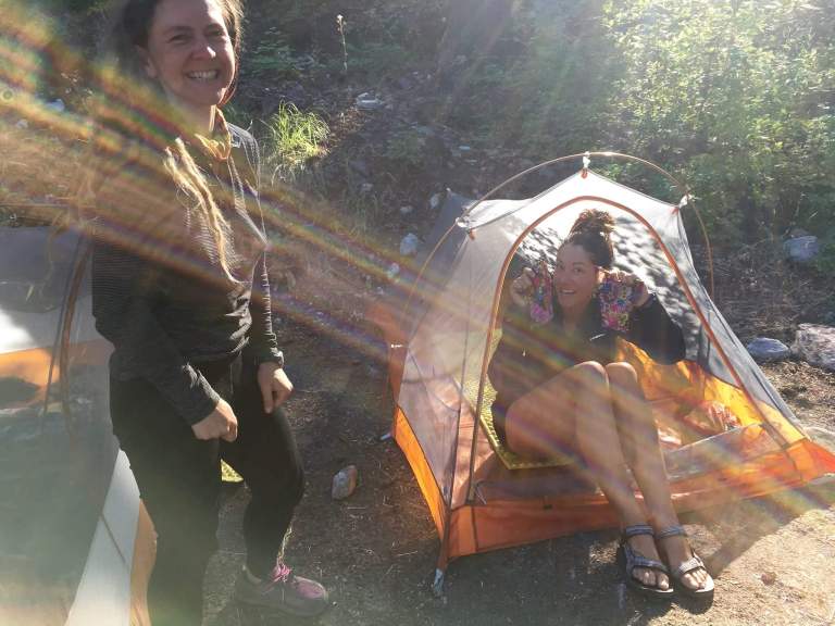 When the time came to get back on trail, Arrow joined us and hiked for about 3 miles or so, even with a hurt knee. We sadly had to part ways in the forest, and hugs were exchnaged all around. Then Monica and I set off deeper into the woods and hiked on a beautiful section of trail that gradually climbs along the rushing creek. Around 8pm we settled on a lovely campsite by the creek where we met another female hiker we had just met on the bus, Lena. She was from Hawaii.