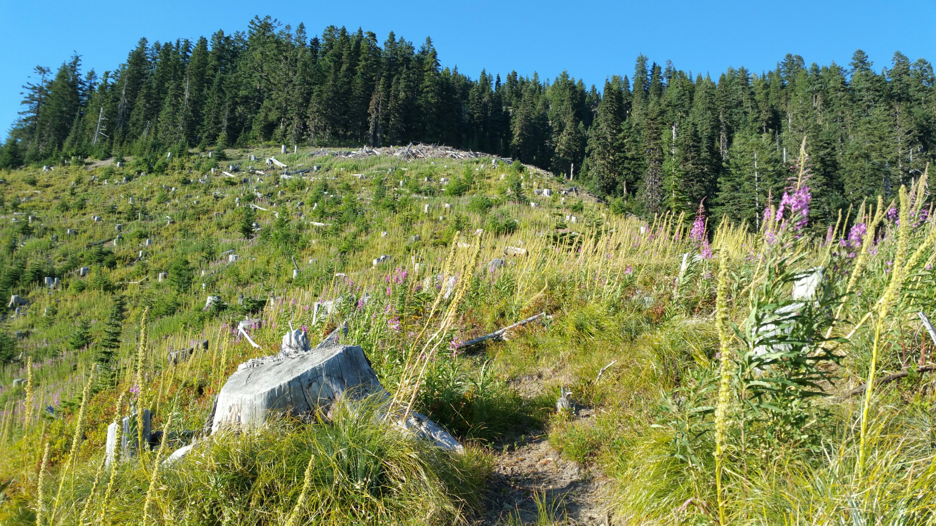 We hiked strong into the forest and chatted about all sorts of things along the way, from health and the brain-gut connection, to other trails we’ve hiked, to deforestation and it’s consequences, making the time go by fast. I felt embraced by the lush forest, as it wrapped it’s gentle hands around me each time I re-entered, by contrast to the harsh reality of clear cuts we walked across. The trail traverses sections of logged areas and they were hot from the exposure and looked so barren, so molested and depressed. Every time I would walk back into the living forest, feelings of intense peace and serenity would wash over me. It made me feel safe, whereas the open logged areas made me feel very vulnerable and on edge. In the forest, there was shade, cool fresh oxygenated air, dappled light, lush understory and smoothe padded trail.