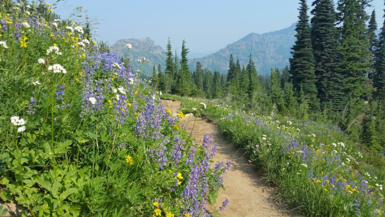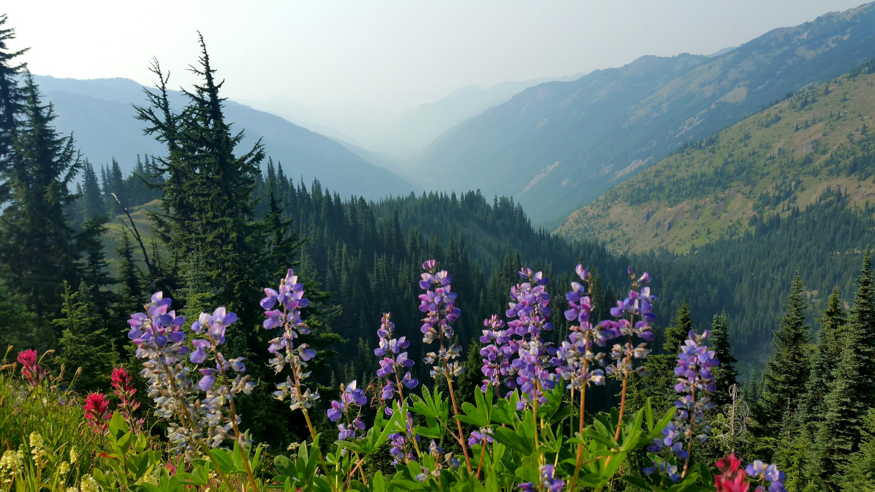 I joined her for an early lunch break and we talked about the upcoming section of Goat Rocks Wilderness and the Knife Edge and the possibility of camping on top of Old Snowy, the summit. The hike this morning was jaw droppingly gorgeous, even with all the smoke, the wildflowers are out-of-control pretty. It is so difficult to speed through it all. I had taken so many photos in the morning it was slowing me down.