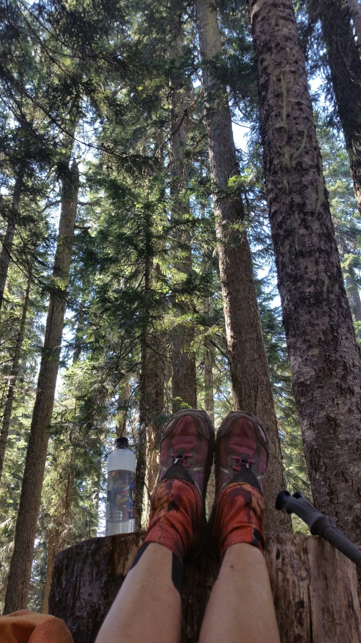 The trail passed through a few more clearcut areas and then back into forests again, where I would experience relief from the heat. By the evening I was amazed to feel how my feet did not hurt at all, even after 23 miles and 6,000 feet of climbing, what a relief! The trail had been kind indeed. When we arrived to camp that night, we had been walking for 12 miles without any water, so the first thing I did was secure some fresh water from the spring. It was ice cold and amazing, and the sun was getting low on the horizon, so my surroundings had that special glow. Ahhhhhh, done for the day…..