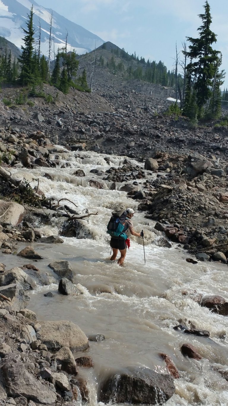 I splashed off in the water, as my feet felt intensely swollen and I’d developed a new blister. Somehow I was also very dirty and it felt amazing to rinse off in the pure flowing water of Killen Creek as I gazed up at the towering mountain. Carrot had just done the same when I arrived, except that she put her whole body in the water. It was pretty cold, she’s badass!