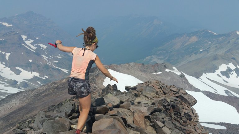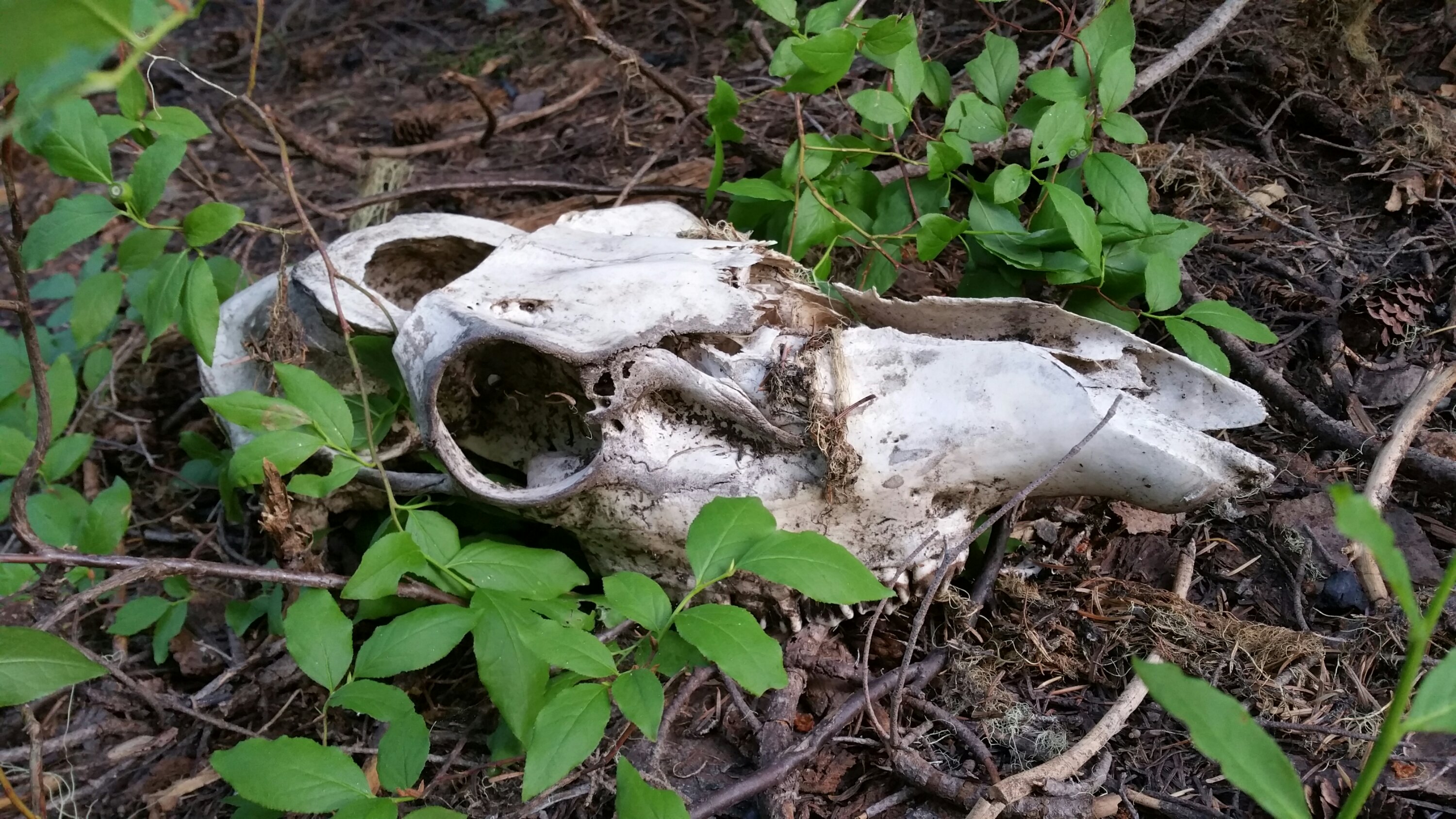At Kraker Barrel I picked up my resupply box, packed everything up and hoisted my now super heavy pack back onto my body. Ugh, it’s always so heavy on resupply days! But, we were off! Joined by Ghost, McGyver and Danger Dog, we all hit the trail in the afternoon, headed into the Goat Rocks Wilderness. Feeling rereshed, and grateful to be back in the forest, I climbed strong. We made it 12 miles to Tieton Pass by 8pm, situating ourselves for an epic day on the Knife’s Edge tomorrow. We camped in a little grove of trees and I found a strange animal skull there…Horse? Elk? Where was the rest of it’s body?