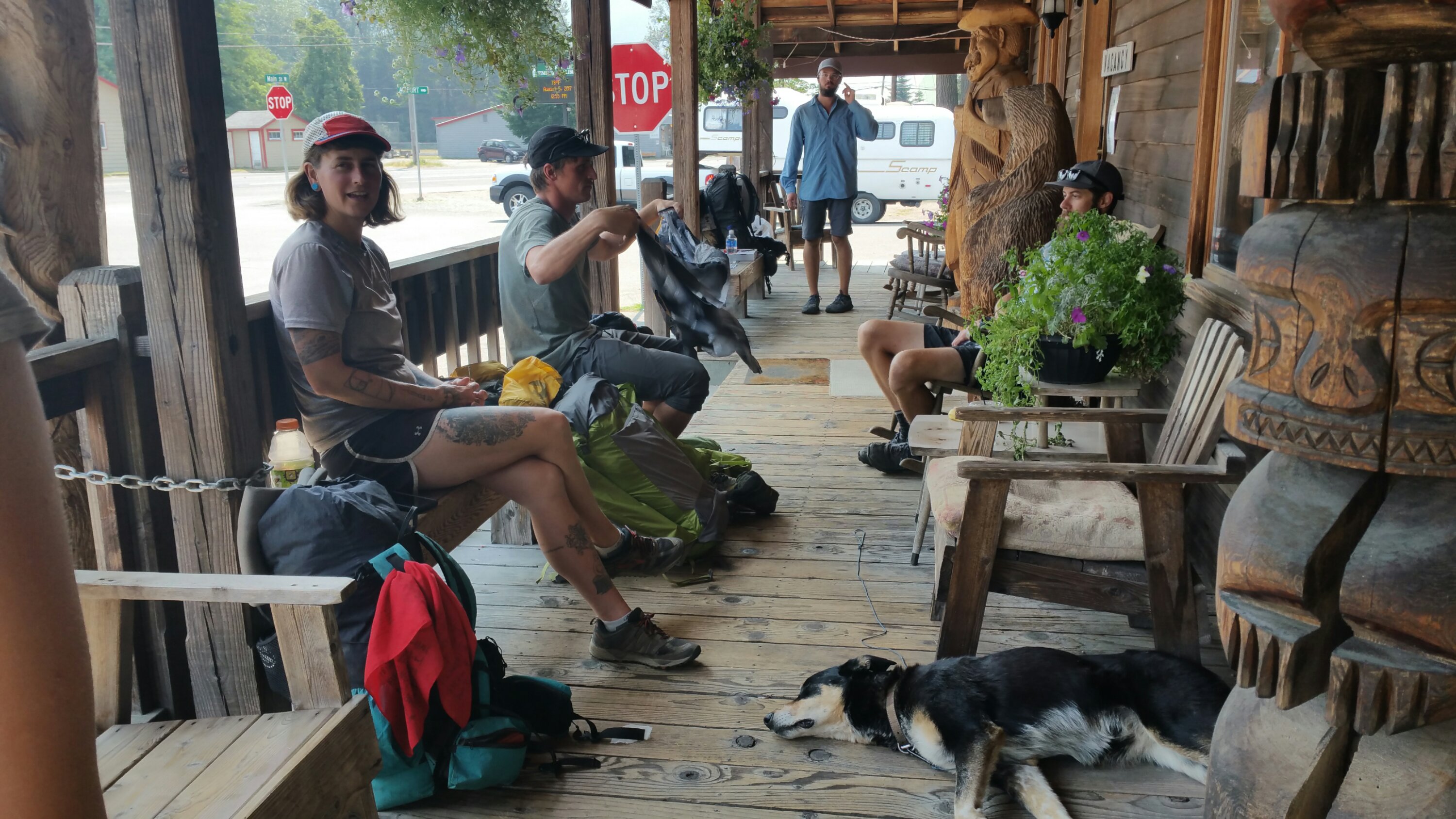 Before hitting the trail again myself, I treated another hiker to acupuncture for some knee trouble he was having, while Carrot sat on the porch of the Hotel and chatted with a group of hikers that had now congregated there. We got a hitch back to the Kraker Barrel from an eclectic woman (Debbie) in her 60’s with sun-worn skin, driving a beat up red truck and she told us all about how she makes a living by having yard sales. She purchases everything at a severe discount, in bulk, and then sells it all to locals at a profit but still at a lower price than they would pay at a store. No overhead! It was quite interesting, and she makes a decent living for herself. Impressive.