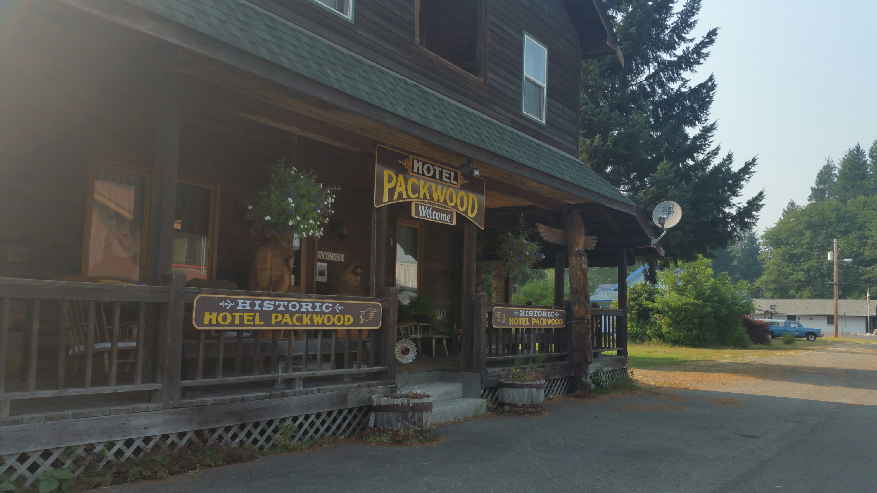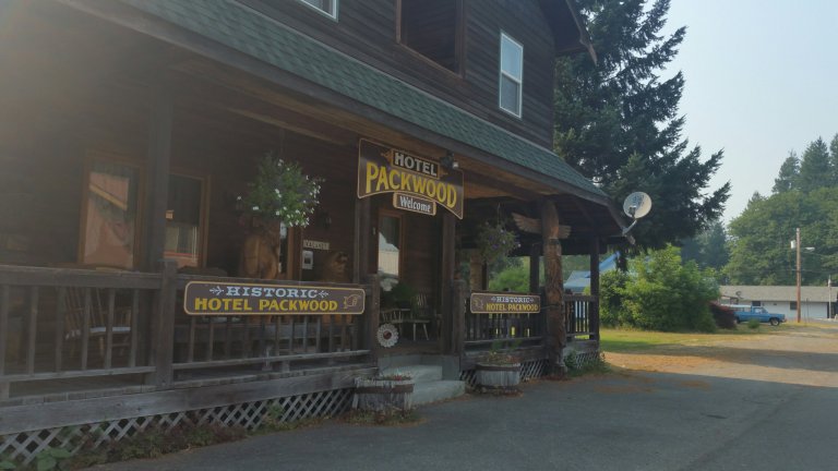 DAY 20: August 5th, we were in Packwood. An interesting, quaint little place. I enjoyed it quite a lot, actually. It’s unpretentious, and had all the “things” I needed. Carrot and I got a room in the charming old house called Hotel Packwood with a wrap around wooden porch and small rooms situated along a cooridor that had two shared bathrooms. The entire place had an old fashioned country look to it’s decor and when the owner (Marilyn) checked us in she took one look at us and said “my God, you girls are filthy, makes me anxious!” and then she requested that we wash our socks in the shower before giving them to her for washing in the machine, cuz otherwise they will “break the machine”. I guess she gets a lot of hikers. Carrot and I got settled into our tidy room, all of which we paid $25 each for (including laundry and loaner clothes) and I opted to sleep in the cute little twin bed. We decided that this house was formerly a brothel. It had to be, what else? Now, the bookshelves were lined with books of Christian faith.