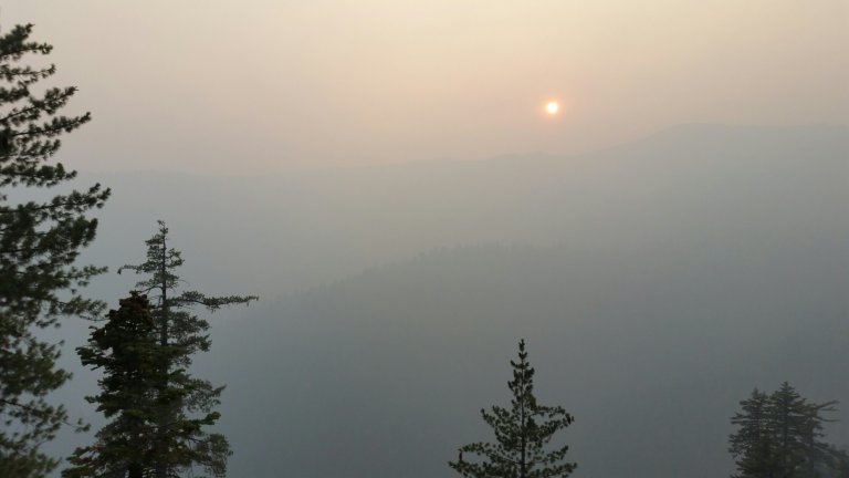 My mind slips and slides all over the place, but keeps landing back on the idea of skipping ahead to the Sierras, and coming back here when the smoke is gone. I don’t like this smoke at all, I think, I am over it. I go over all the logistics in my head and imagine having the conversatin with Tripsy, the logistics with my Dad, explaining to others who are not thru-hiking what I am doing and why, and I think about the reality of coming back up here to finish this section in October. Just thinking about all this makes mey head hurt, and would I come back? Would I really?