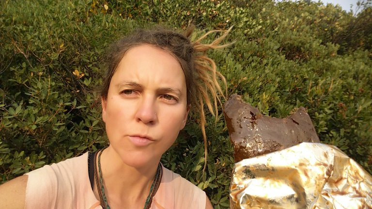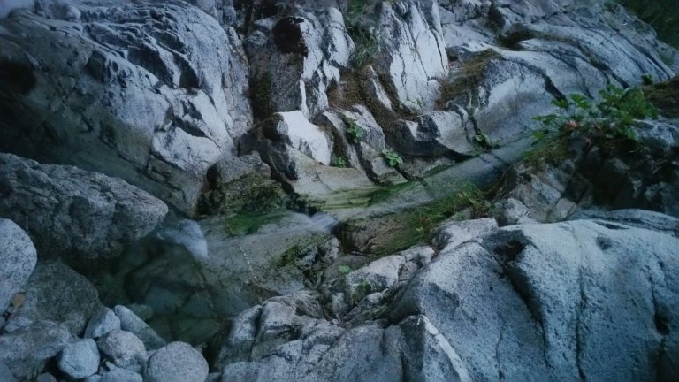 It’s getting dark by the time I reach camp, I need water, my hiking mate, Tripsy, is nowhere to be found. I go further, I backtrack. Finally, it’s getting dark in these woods and I drop my pack in a tentsite, and go to look for water. After 10 minutes of walking back where I’d just come from I reach the dry drainage and follow it upstream over boulders, loose scree, roots and branches, only to find a lovely waterfall sliding down a smooth piece of granite into a pool that is just large enough for…. me. I waste no time and strip down to nothing, and immerse my entire body into the chilly water. Oh-my-god, nothing ever felt so good. I lean back on the rock and position myself so I can soak for a few minutes. It it’s getting darker and I don’t have a headlamp with me. So, I get out, dry off with my sour smelling shirt and collect water into my platypus. I walk back to the trail in the dark, squinting my eyes and eventually find the campsite where I left my pack. Home for the night. It’s dark, it’s a little bit creepy here, but the bugs are gone, thank god! The wind is howling through the trees above, and I sit in the dark eating my dinner of instant beans and chips trying to collect my thoughts and entertaining what may have happened to Tripsy? She’s okay, I tell myself, and so am I.  I can’t seem to get enough water to quench my thirst.  It us still so damn hot.