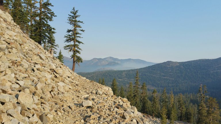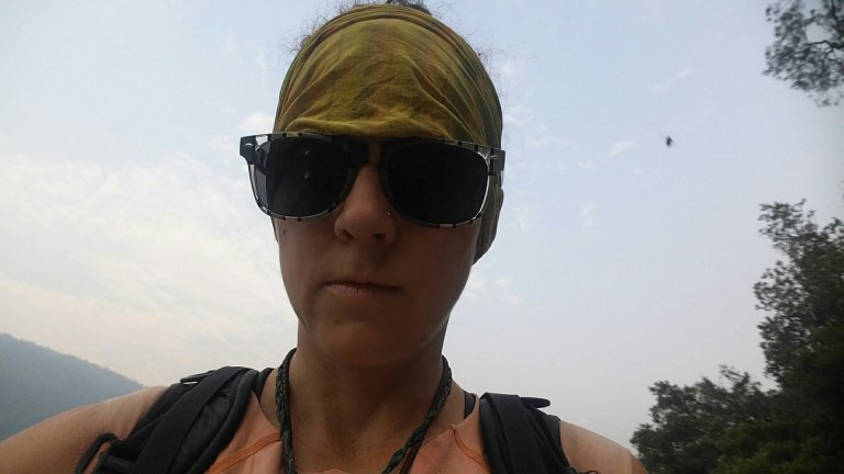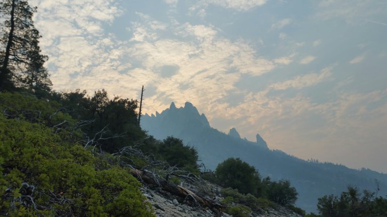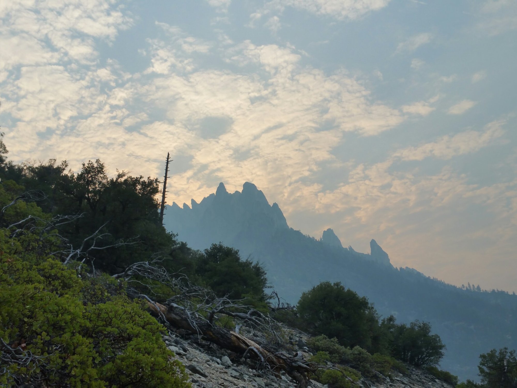 We had a lot of smoke today, too. Heat, smoke, lack of water for miles. Oh, and the rocks. Rocks everywhere. Then there was the afternoon descent, over 4,000 ft of it in one swoop. It’s funny to think how I climbed this last year, I don’t really recall that much. I think it’s because I tucked it into that category of “miserable” and left it there. Last year when I did this climb it was even hotter. Today was not miserable, but there were moments of it. I came to realize that those moments, making it through them, and keeping an upbeat attitude, still seeing the beauty, still appreciating being out here, are what make me a thru-hiker. I am here because I want to be. That, makes me a thru-hiker.