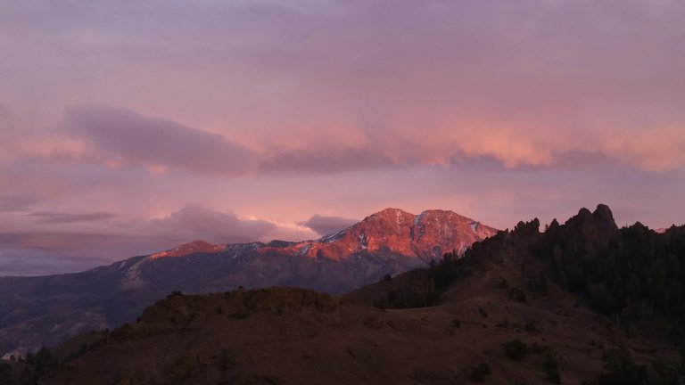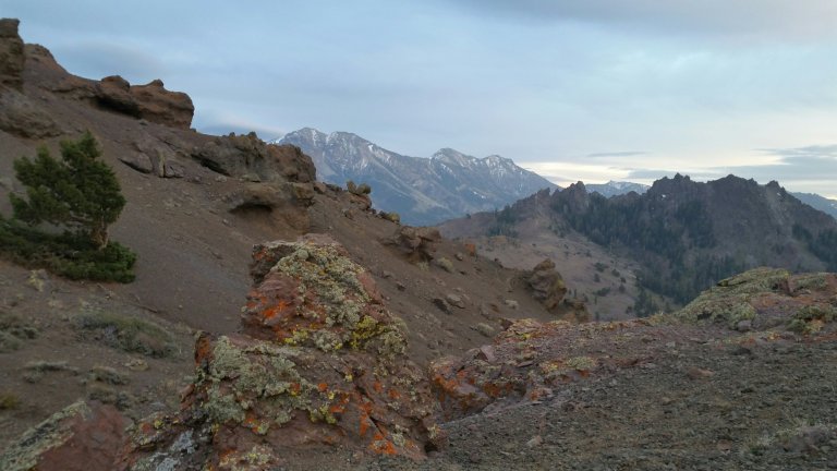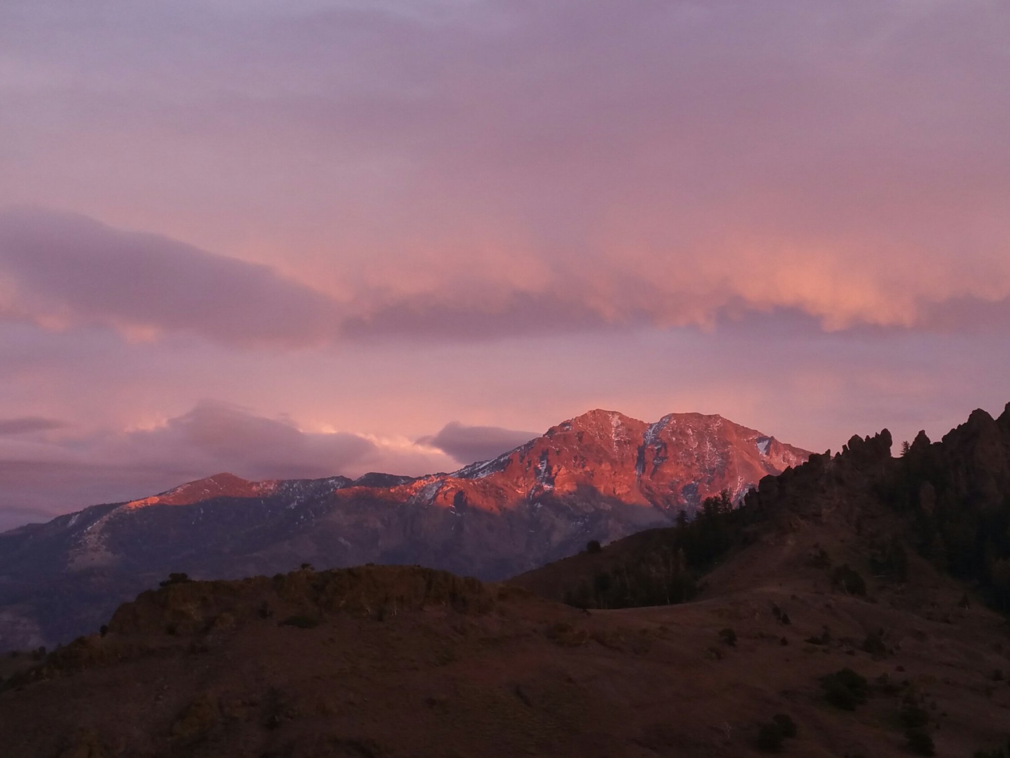 By around 5:30pm I found myself on a hilltop overlooking the valley to the East and the wind was picking up harder, blowing in very interesting clouds, which made for a stellar sunset later on. I was getting hungry so I ate the snacks that the group of hikers had given me, and I pushed on a little further until almost dark.