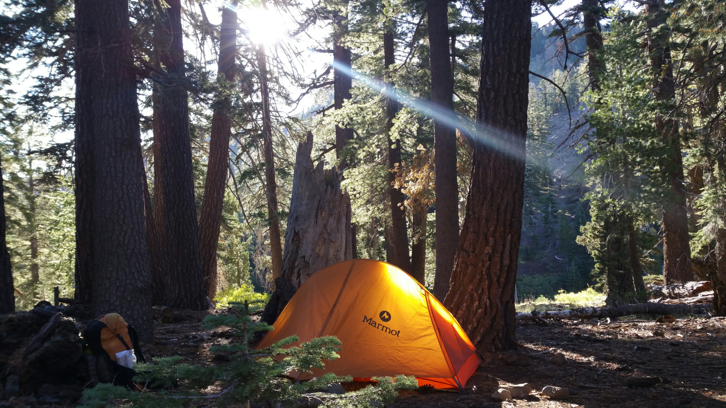 I set up my tent, now a Marmot EOS 1person, with a double wall/rain fly. It is free standing, has poles and everything, so it’s like a “real” tent, not a tarp. I love my tent, it’s cozy and I feel protected inside it. It’s not drafty like my tarp is. I decided it’s worth the weight. I got my dinner started on the boil, and continued unpacking my backpack that is like a whole new series of steps now that all my gear is changed out. I don’t know my routine anymore, it’s strange. I was using my headlamp and ended up eating my Annie’s Mac N’ Cheese in the dark, listening to the wind howl up high in the tallest branches of the pine trees. I was, meanwhile, enveloped in a stillness down below, where it is peaceful. I am happy, so happy to be here.