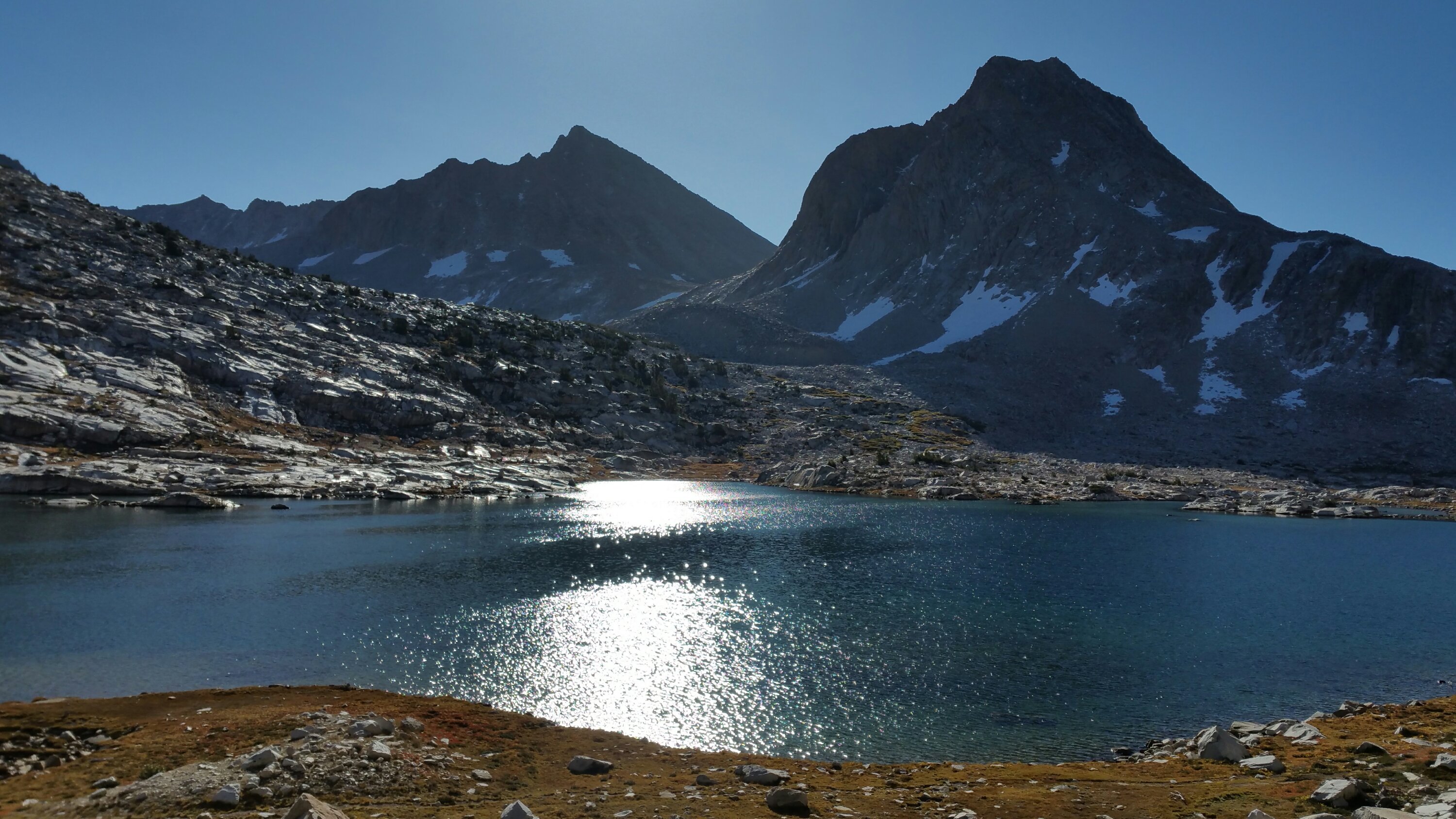 I hiked down and down, and I eventually got too warm and stopped to layer down and gather some fresh water from one of the lakes. Stopping there in the sun, I felt a stillness, a calmness, a happiness that encompasses this entire experience. The surrounding beauty is better than any piece of art, for it is nature’s art and compares to nothing a human could create. I took a few moments to feel this energy, to be grateful, to remember the moment, and then I dashed back to the trail, eager to meet up with my Dad and get to town. Yay, town day!