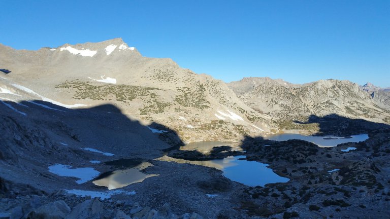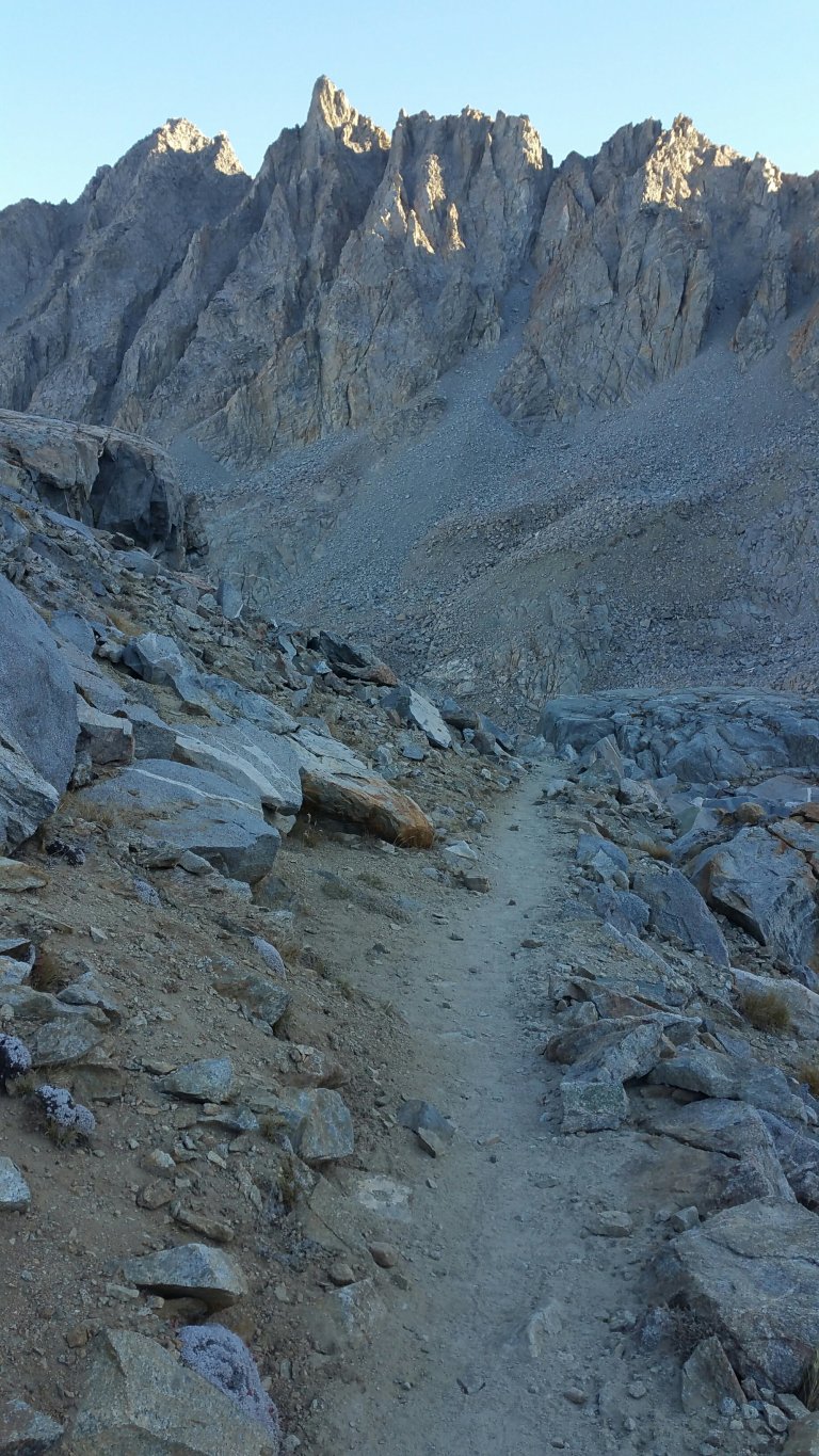 The three boys had decided on going to Bishop for resupply because, again, they had eaten all their food in half the time they expected to. So, they planned to catch a shuttle, that they hoped was running, but weren’t sure, the next morning at 8:00am. This meant they had to get up by 4:30am and start hiking by 5:30am, get up and over Bishop Pass and drop 3,000 ft to the trailhead. I heard them rustling in the middle of the night, zippers sliding, bags being stuffed, and I swear I could even hear their teeth chattering. They took off around 5:30am, as planned, and the last thing I remember hearing from them wad “fuck it’s cold”. And it was, it sure was.