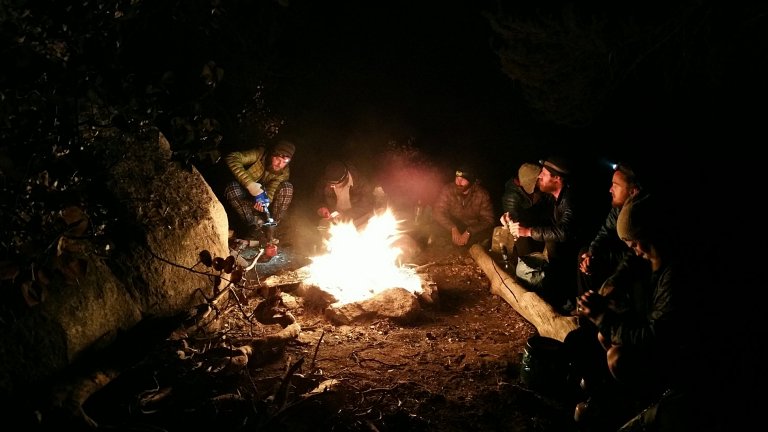 Oh yes, I was ready, super ready, and it was getting quite cold. I found my spot to pitch my tent, and quickly got all set up, bundled up and decided on cooking my dinner and eating inside my tent to stay warm. So, there I was doing my camp chores, the others the same, and the sky is darkening, stars are starting to come out ever so faintly, when we hear “heeeeeey yooouuu guuuuuys” coming from, where? It was Shamless! What the hell? How did he get up here and where did he come from?