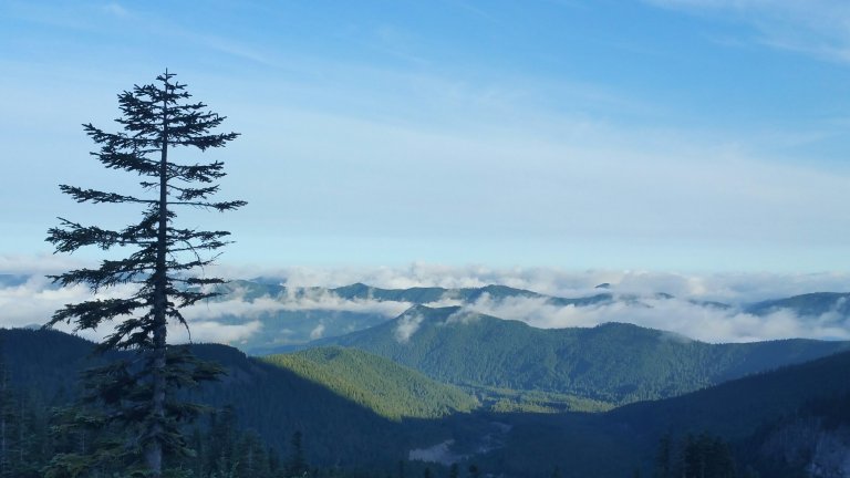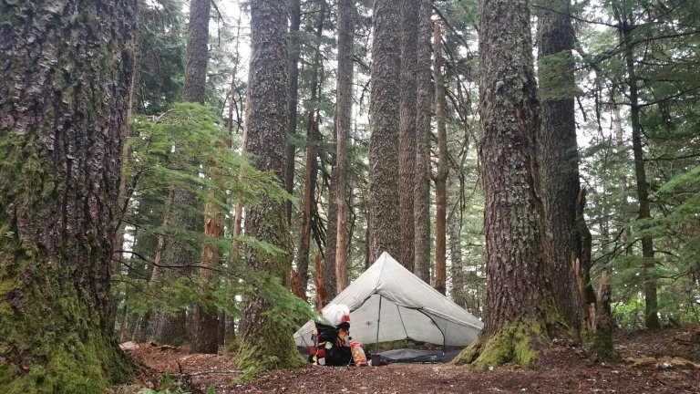 I sat there in camp, silently eating my dinner, listening to the creeking of the trees and the wind up high. I could even hear the train down by the river and was amazed how that sound traveled. Despite all that, it was eerily quiet, and part of me felt vulnerable. I hadn’t camped alone in weeks, it was a little bit different, but I liked it. There was moisture beginning to collect on my jacket as I sat outside eating, and it seemed like it could rain at any moment. It was dark by then, and so I cleaned up my cookpot and got into bed. It started to rain shortly after that, and I fell asleep to the gentle tapping of rain on my tent. Oh what a lovely sound, it’s been way too long! Hello Rain, Hello Oregon!