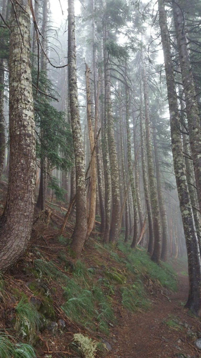 Climbing, climbing, I moved steadily and rather enjoyed the workout, even with my heavy pack, taking long, steady deep breaths and exhaling completely. The forest seemed so well hydrated, vibrating, thriving on all the water the previous season had bestowed upon her. I sucked in the rich oxygenated air and noted the scent of fresh Earth, moss, lichen and pine. I only saw one other person that afternoon, a Nobo who stopped at the same spring for water that I did. We only exchanged a few words, as the day was getting on, he was pushing to get to Cascade Locks and I was pushing to find a campsite before it got too dark.