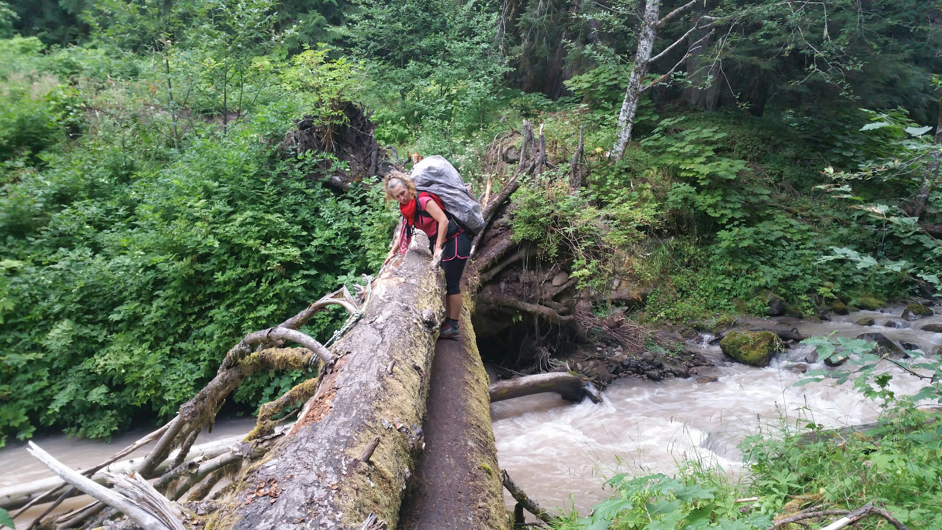 We passed the time quickly with all our chatter, and soon found ourselves at the bottom of a 1,600 foot descent that I literally do not remember climbing up last year. It seemed to drop and drop and drop, with so many switchbacks through the dense forest and quite a few blow downs. It was quite beautiful, I have to say.