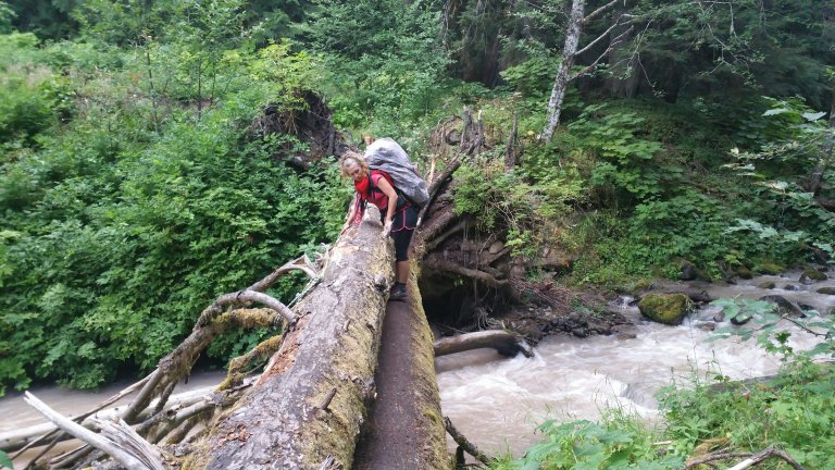 Rain. Today is the first day on the entire PCT this year that it has legitimately rained, and it was glorious. Well. glorious may be a tad of an exaggeration, but truly, it was a beautiful, peaceful day. A lot happened today that made it special and memorable. The rain, to start, was one. I also broke my own mileage record today, I met up with Mama Lion, I visited Ramona Falls, I crossed the Sandy River with views of Mt. Hood at Sunset, and camped next to a wonderful roaring creek in a dense, dark, dripping wet forest.
