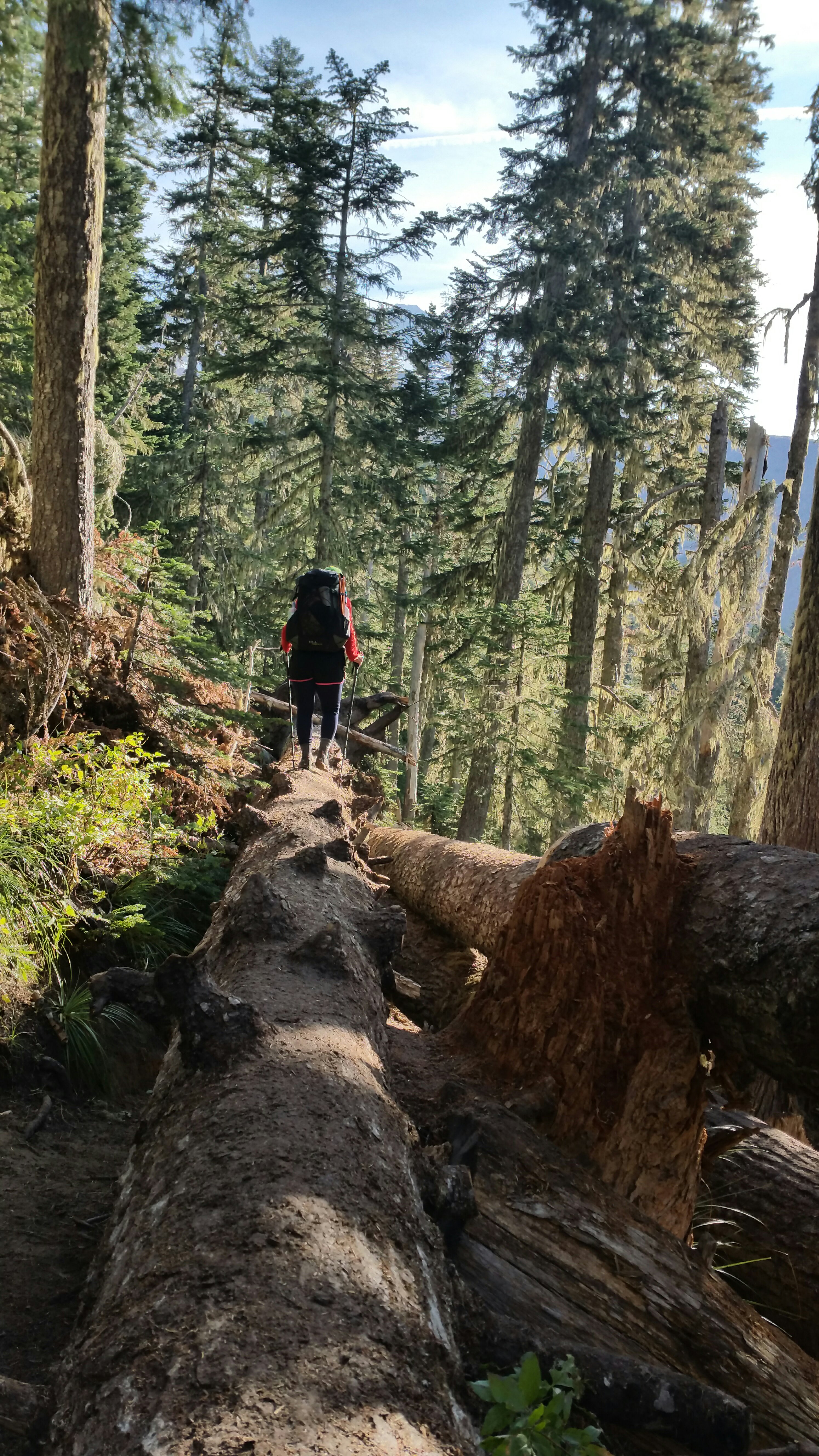 We stayed there way longer than we should have and left at like 2pm. Oops. Worth it though. We hiked on in a food coma and after a few hours I really started to not feel well. My throat was super sore and my body felt achy. By 5:oopm we stopped to re-group at a dirt road crossing. I sat down on the gravel and ate an energy bar, took some Ibuprofen and Chinese herbs for my sore throat, drank some water, aired out my feet an peed. Ten minutes and we were off again, with 5 more miles of climbing ahead of us and 8 more miles to camp. We had already hiked 20 miles for the day and were planning on 28. We got this!
