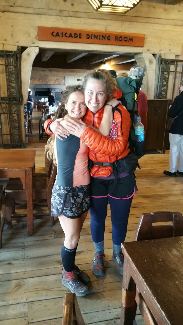 From camp that morning to Timberline was about 12 miles, so by the time we were .25 miles from arriving at Timberline, I was beyond famished. I had wanted to save my appetite for the buffet, so I ate lightly that morning. I had been pushing hard and maintaining a steady resistance to my hunger, trying to block that insane desire, knowing how close I was to really eating, but it may have taken more emotional energy to do this than was healthy. Peat and the kids came out on the trail to greet us and it took every ounce of niceness that I had in me to smile and give everyone hugs and be chatty, when all I could think about was the food! Yes, Hiker Hunger got the best of me that day. But, alas, we were seated at the gorgeous wooden table in the main dining room of Timberline, all 6 of us, and I had a message from Monica that she was close by and would be there to join us soon. Somehow, we had passed her tent last night in the dark without even knowing it. I was so glad she and I were going to see each other again.