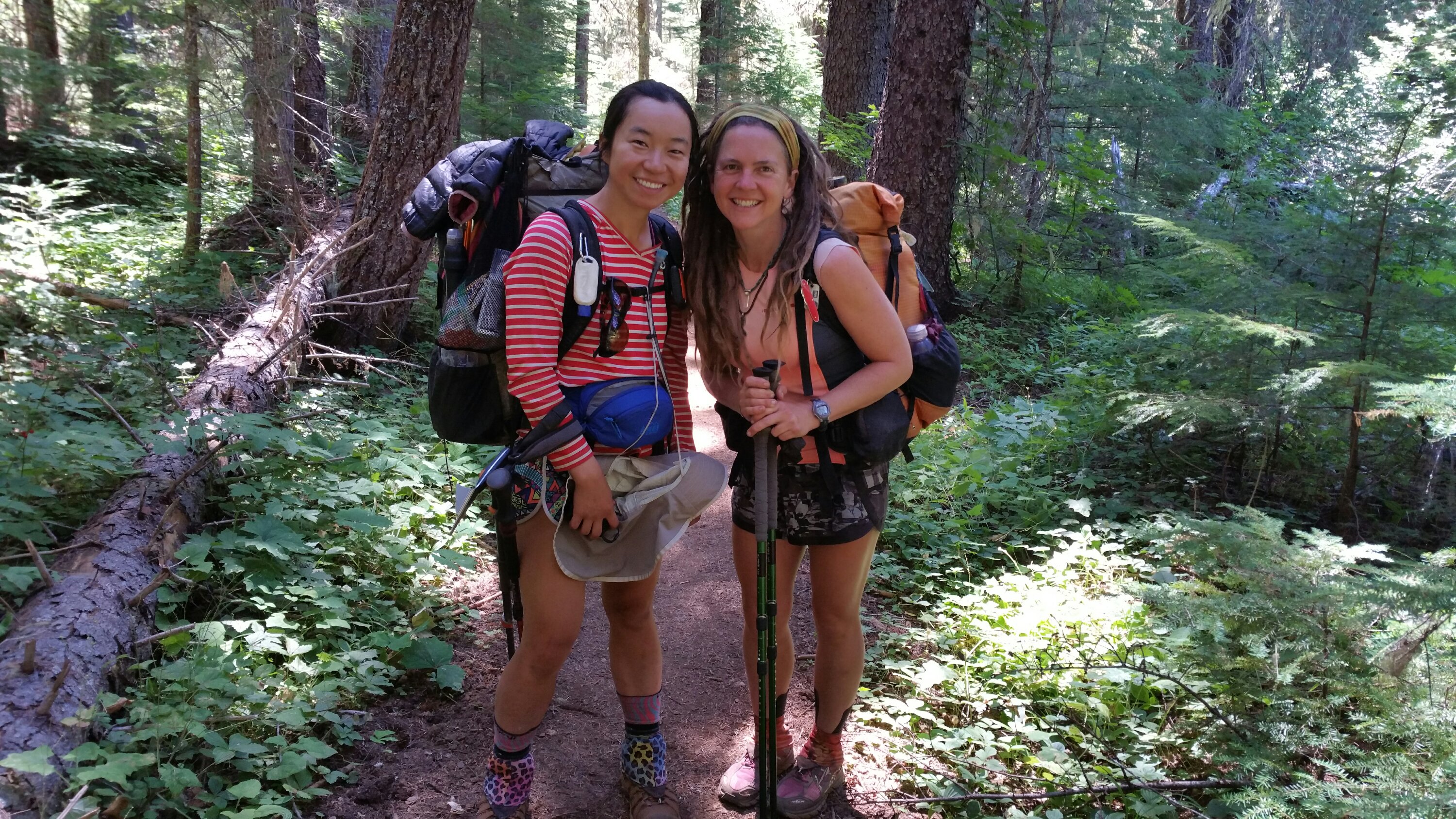Timothy Lake was beautiful as ever, and I was so glad it was not closed due to the recent fires. The PCT travels for a few miles right on the edges of this lovely lake, winding lazily. We strolled along the lake in the forest, and shortly I ran into another hiker, going Nobo, named Optimistic Turtle. She and I had been friends on facebook for a while and followed each other’s journeys. It was so cool to meet her in person, and we both immediately recognized one another and hugged hello. Where else does this kind of thing happen, a chance meeting in the woods, but on the trail? We chatted for a bit and took a few photos, and parted ways with blissful well wishes for the remainder of our respective hikes. She told Tripsy and me about some trail magic up ahead, at the horse camp, that was not to be missed. We were so excited about the actual pssibility of trail magic for us Sobos. Hooray!