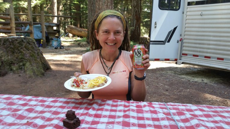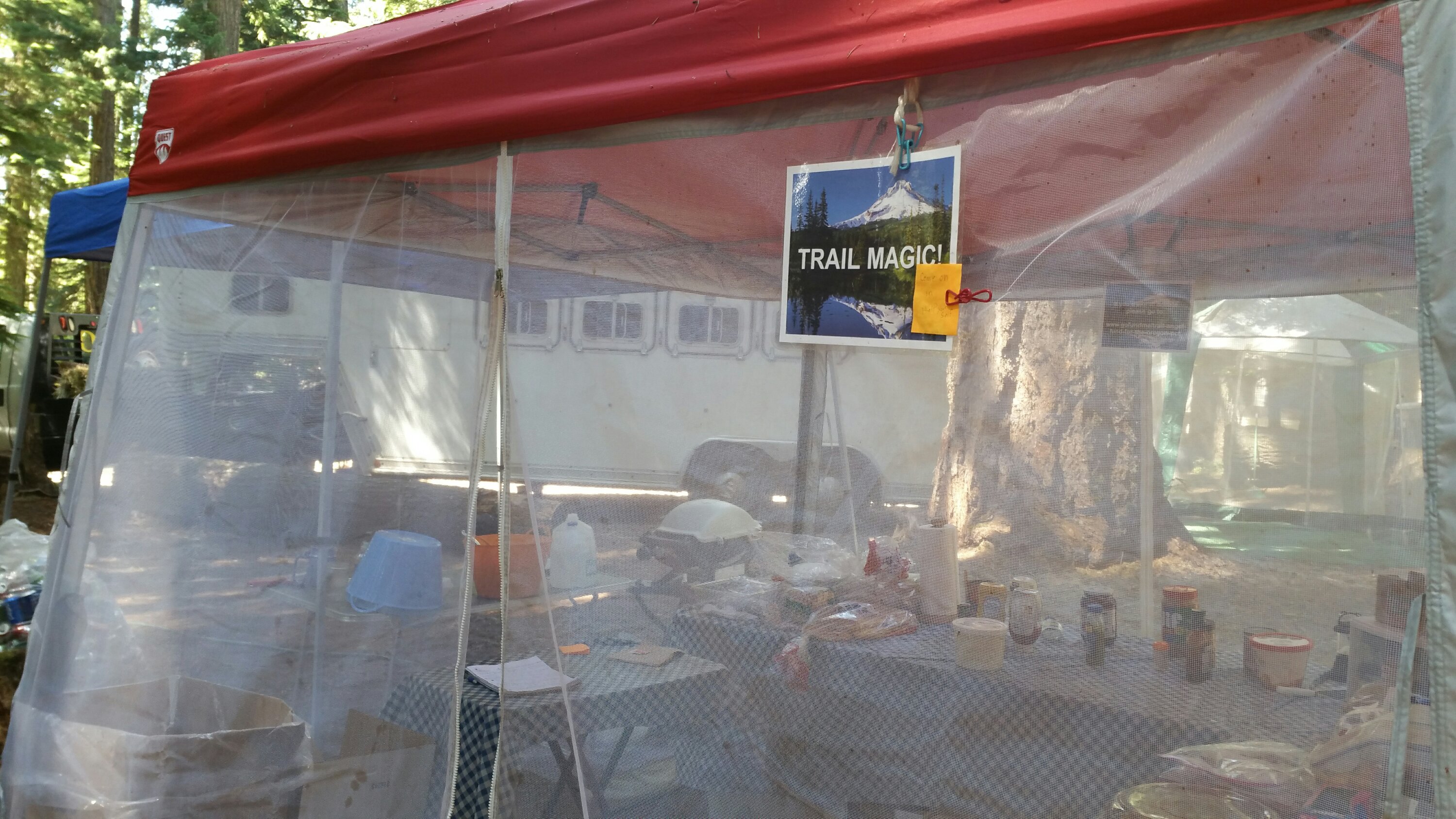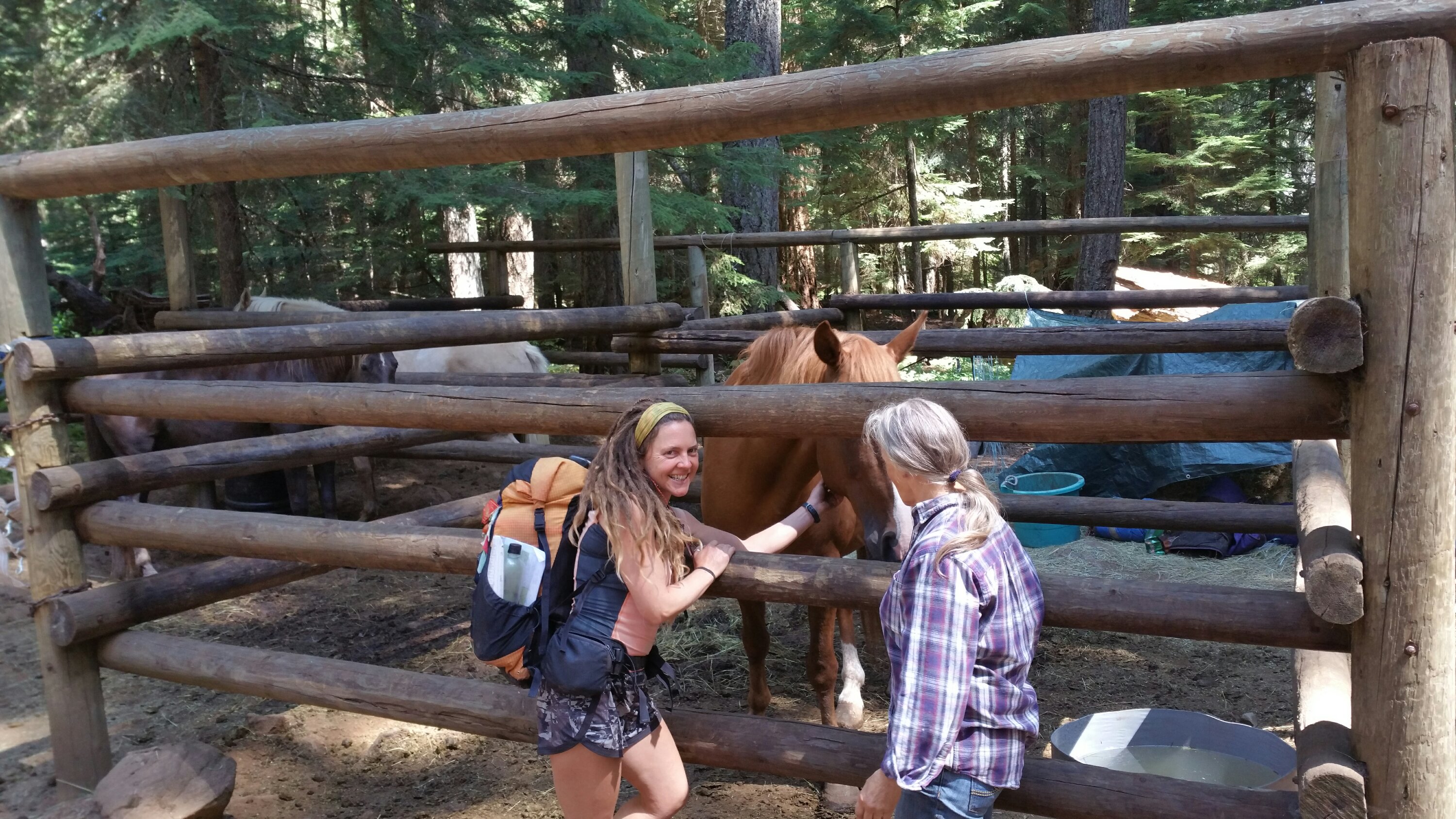 We arrived just after Ghost did, at the horse camp, and indeed there was magic to be had. The woman there was an equestrian, who visited the area every year for a few weeks all alone, leaving her family back home. She brought three Tennessee Walkers with her and alternated riding them over the weeks there. She apparently also loves hikers, and she put up an amazing set up there. It was incredible, a full pop-up tent just filled with hiker food and supplies. She cooked me eggs with potatoes and toast, and melted cheese on top! I ate that up, shoved a few moist bite size brownies in after that and guzzled a cold V8 juice. Dang that tasted great! I enjoyed talking with her and petting the horses, wishing I could go for a ride. Of course this all reminded me so much of my entire childhood, and young adulthood, camping with my Mom and her horses, so I was feeling pretty nostalgic. It was just the medicine I needed. I felt re-charged in body and spirit after leaving her place. Thank you Carolyn!