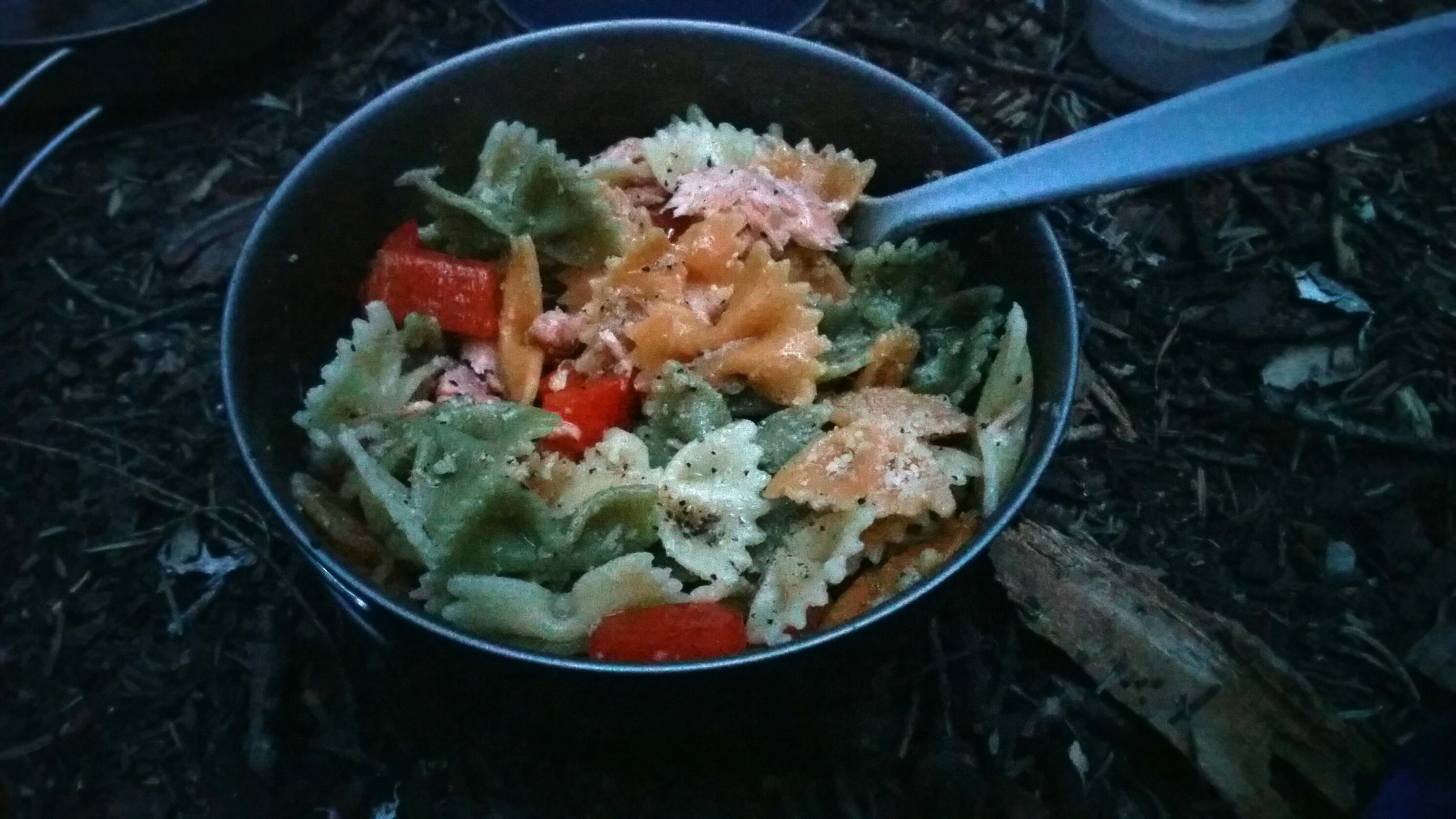 I cooked an amazing dinner that night, bowtie pasta with olive oil, salt & pepper, fresh sauteed red bell peppers and smoked salmon. Oh yeah!