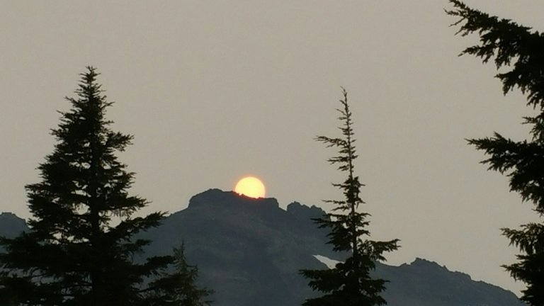 Eventually the sun started dipping closer to the horizon. Since the smoke was still lingering, the sun took on this deep orange radiance and it was quite a sight to see it sinking closer and closer to the top of Diamond Peak. The entire day had a strangely eerie glow of light from start to finish, between the Eclipse and the smoke, lots of cool light things going on. I really enjoyed it. It was a Total Eclipse of the Heart!