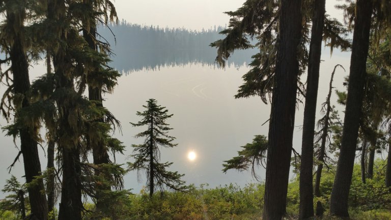 I woke up at 5:30am having not slept very well, and had to go poop right away; it’s just something that happens on the trail. I slipped my head lamp on and went into the still dark woods. The mosquitoes were already awake and it was also already smoky. So much for a positive anticipation of getting away from this smoke. Every day is a mystery I tell ya. As I sat in my tent vestibule making coffee I started to question whether I really packed the right amount of food. I did a quick food inventory to double check, and decided it would have to do, unless we were to make a side trip to Diamond Lake Resort, which is not too far before Crater Lake. I’d never been to Diamond Lake, so part of me wanted to go there, but my brain couldn’t really conceptualize exactly what that would entail in terms of mileage and how it would affect our overall itinerary, so I just shelved the idea for the time being.