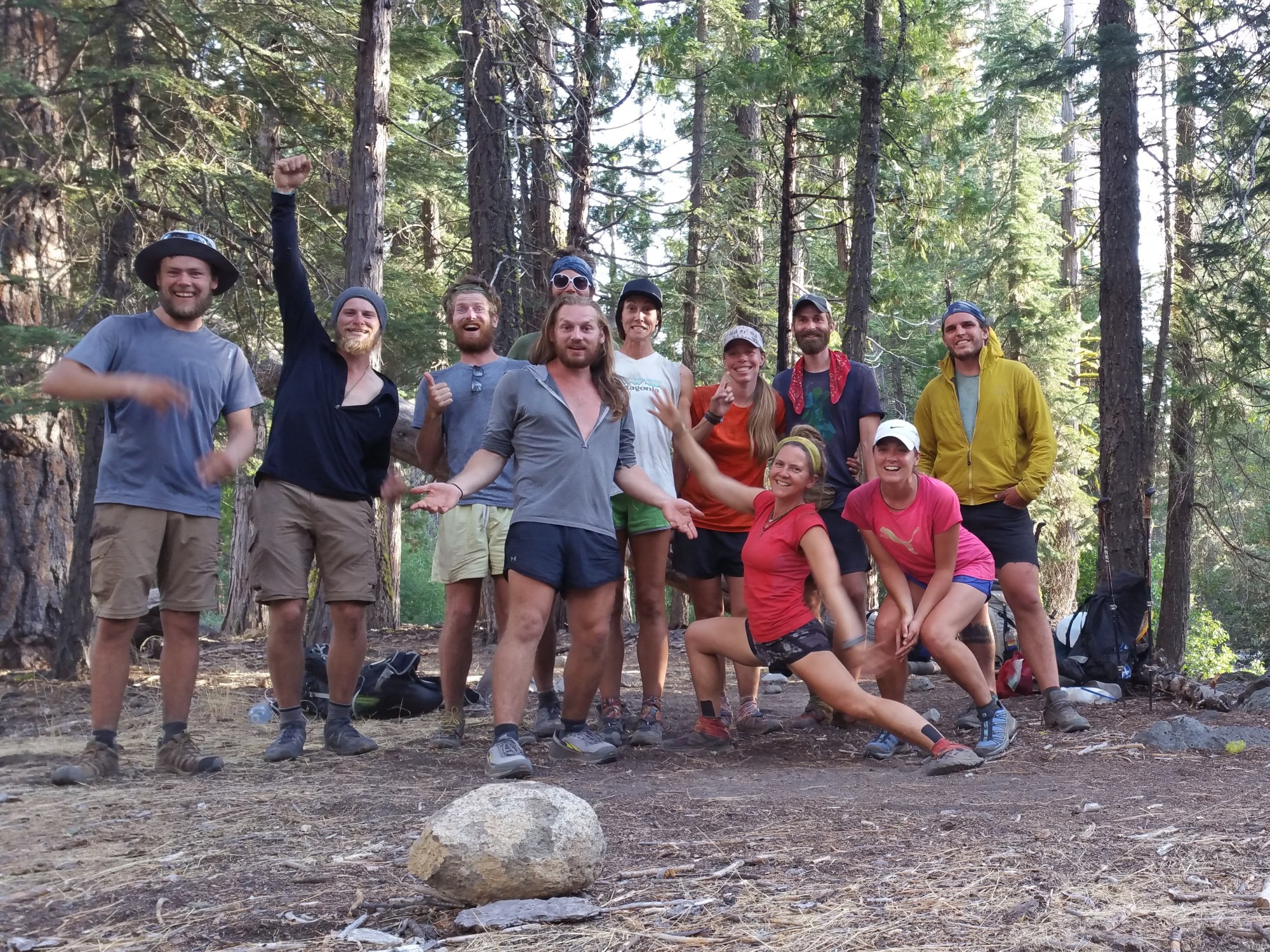 As evening set in, we all sat around cooking our dinners, or in Shameless’ case eating his jumbo burrito. Several of us brought a long a trail beer which we chilled in the creek by wedging the cans between rocks, and we even took a group photo. Does this make us an official trail family? As dark settled in, I tucked into my little green cocoon, exposed to the big open sky, watching the clouds build thicker and denser, and I could see twinkling stars through pockets of sky between cloud and tree cover. I fell asleep listening to the rushing water of Hat Creek, wondering if it might rain….we’ll see, we’ll see.