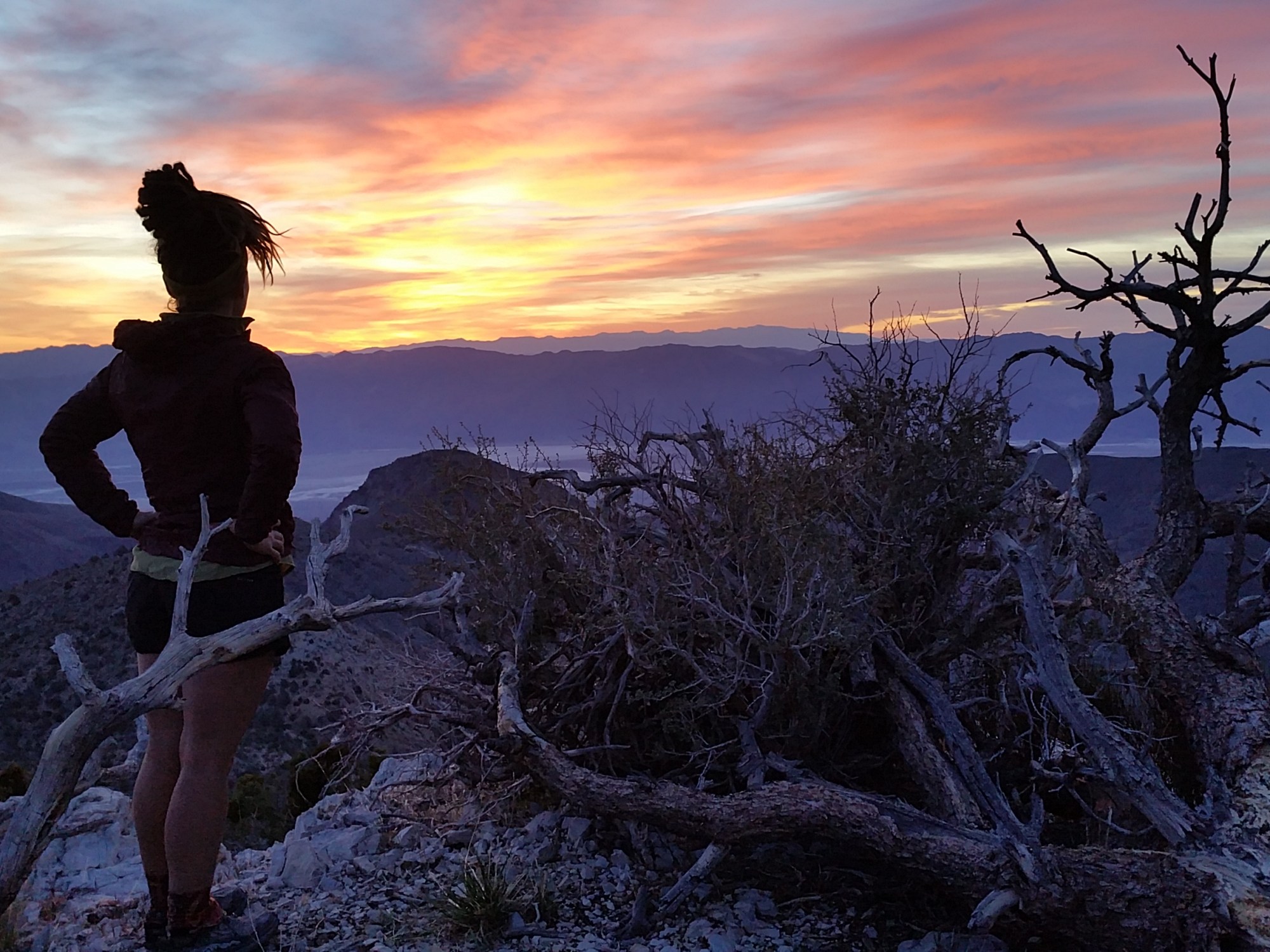 Sometimes I would fall to my knees, and try to catch myself from going all the way down. It seemed that no way was the easy way, and that was ok, I signed up for this. I took my time and huffed up and up and up, until finally, we made it to the ridge. On the ridge, there was a nice, flat, compact trail. It was the trail to Telescope Peak’s Summit, another 1.3 miles from where we intersected it. We both took a break on the trail. I was suddenly very hungry and needed to drink as much water as possible to catch up on my hydration. Hike up 10,000 ft to Telescope Peak, Mission Accomplished.
